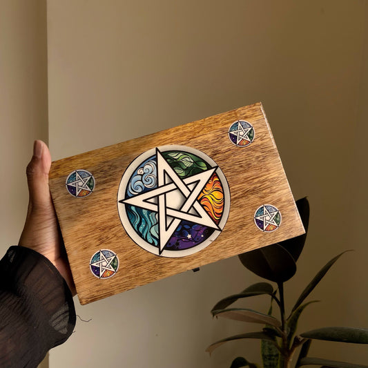 Pentacle empty wooden Box with Elemental details