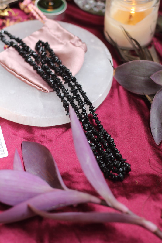 Black Tourmaline Chips String (Mala) - 1 Piece