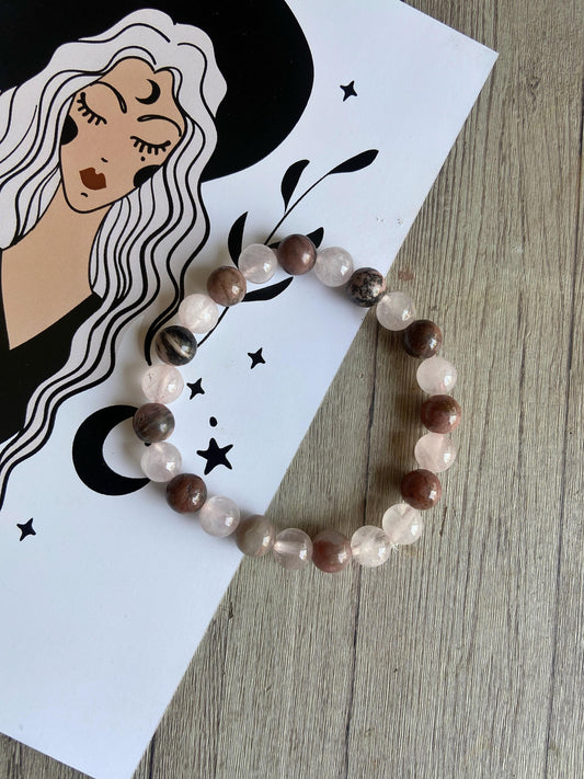 Rhodonite + Rose Quartz Beads Bracelet | Love, Self love, Peace