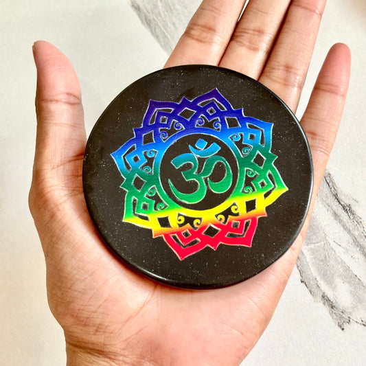 Om & Crown Chakra Black Obsidian Plate – Divine Connection & Protection