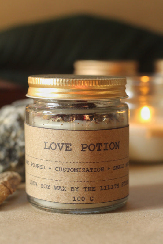 Love Potion Candle | Ritual Candle | Herb & Crystal Infused Candle 100 gm wax