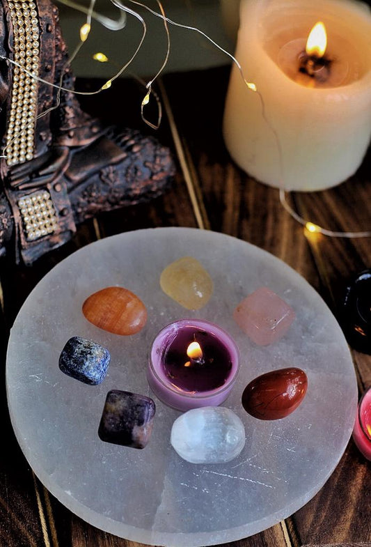Seven Chakra Scented Candle with Crystal - Set of 7 Soy Candle - 100 g