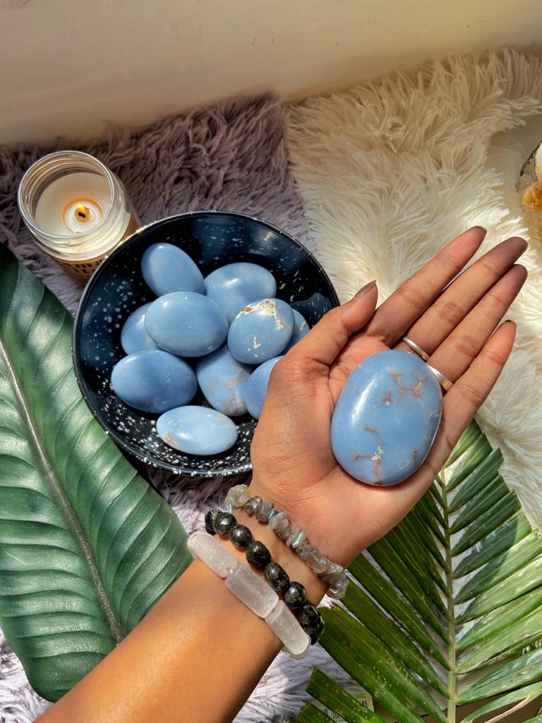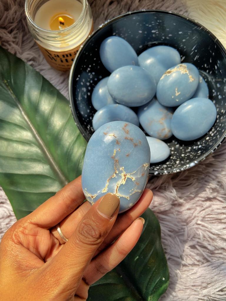 Angelite Palmstone - Stone to Connect with Spirit Guides