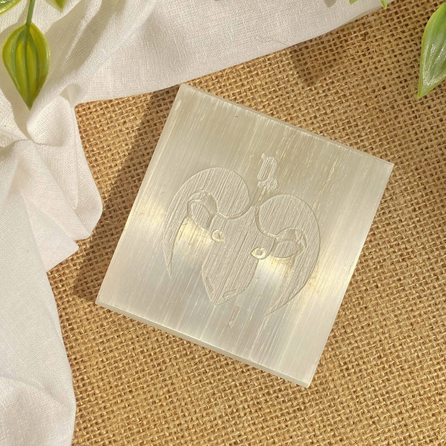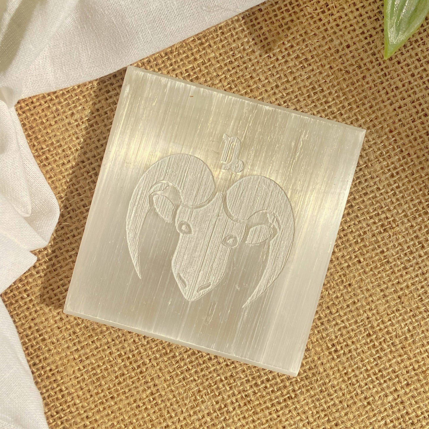 Capricorn Zodiac Carved Selenite Plate - 3 Inches
