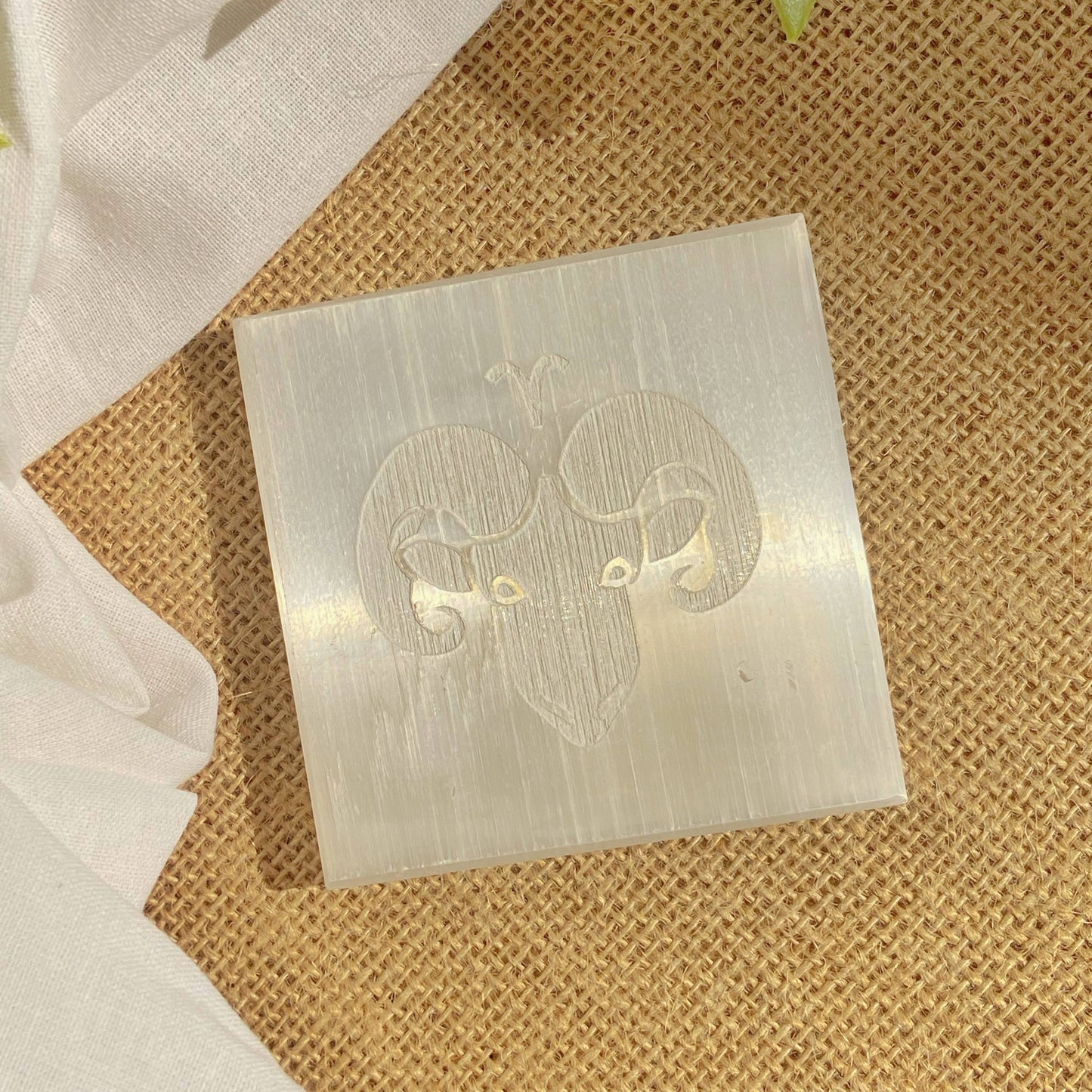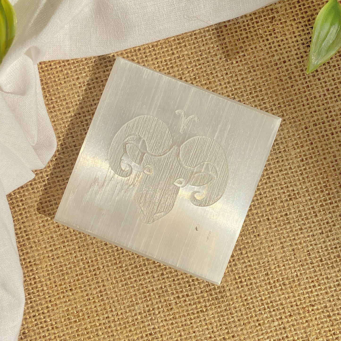 Aries Zodiac Carved Selenite Plate - 3 Inches