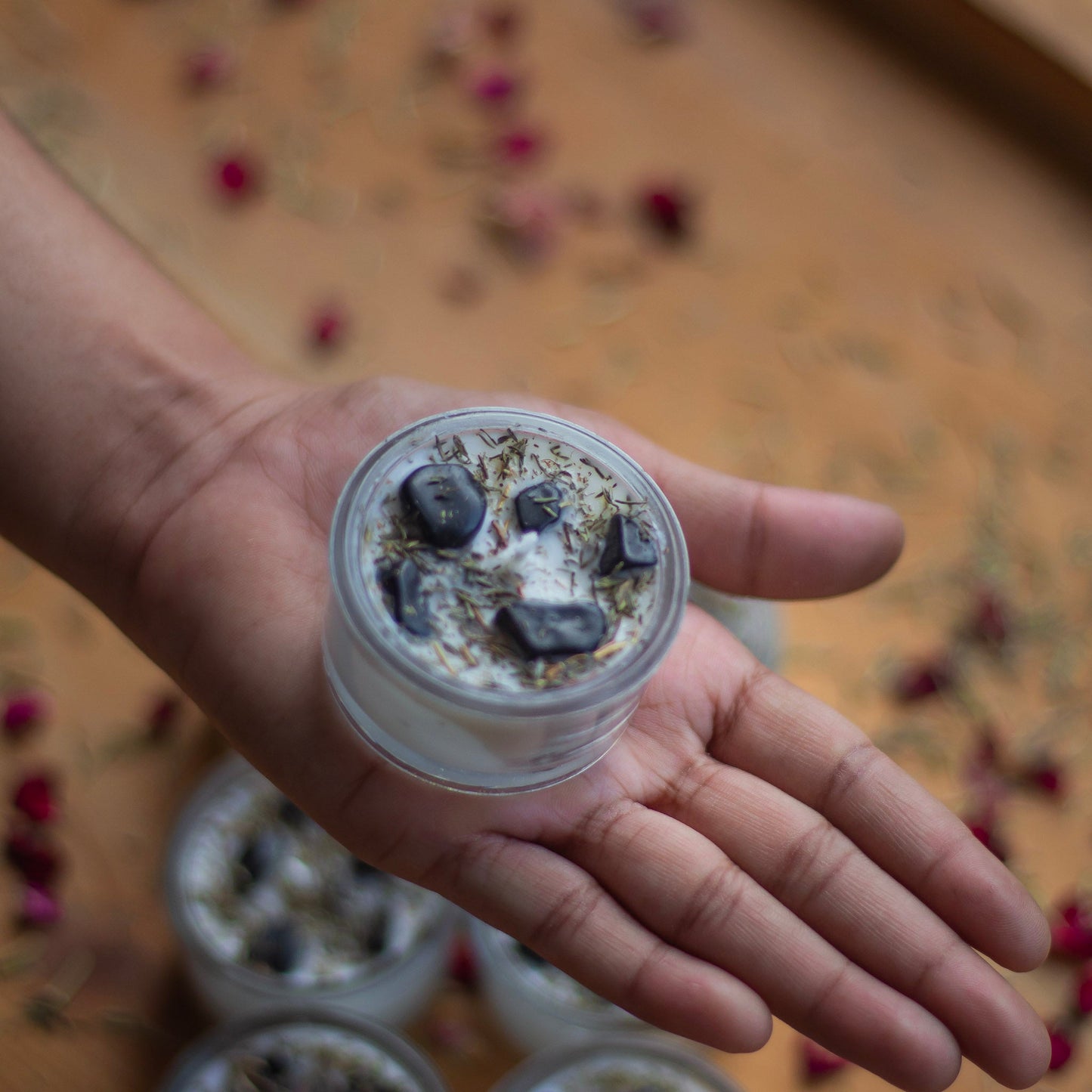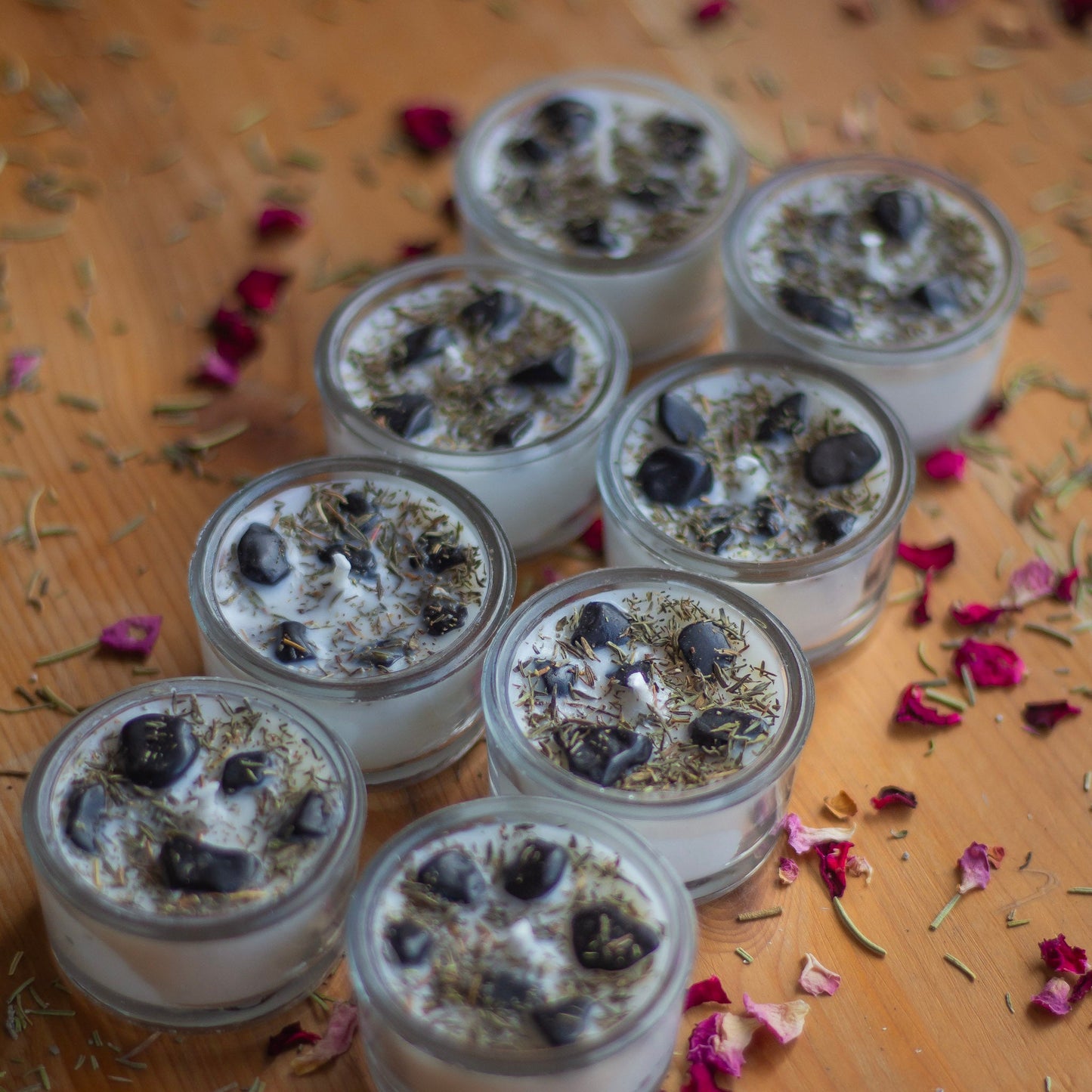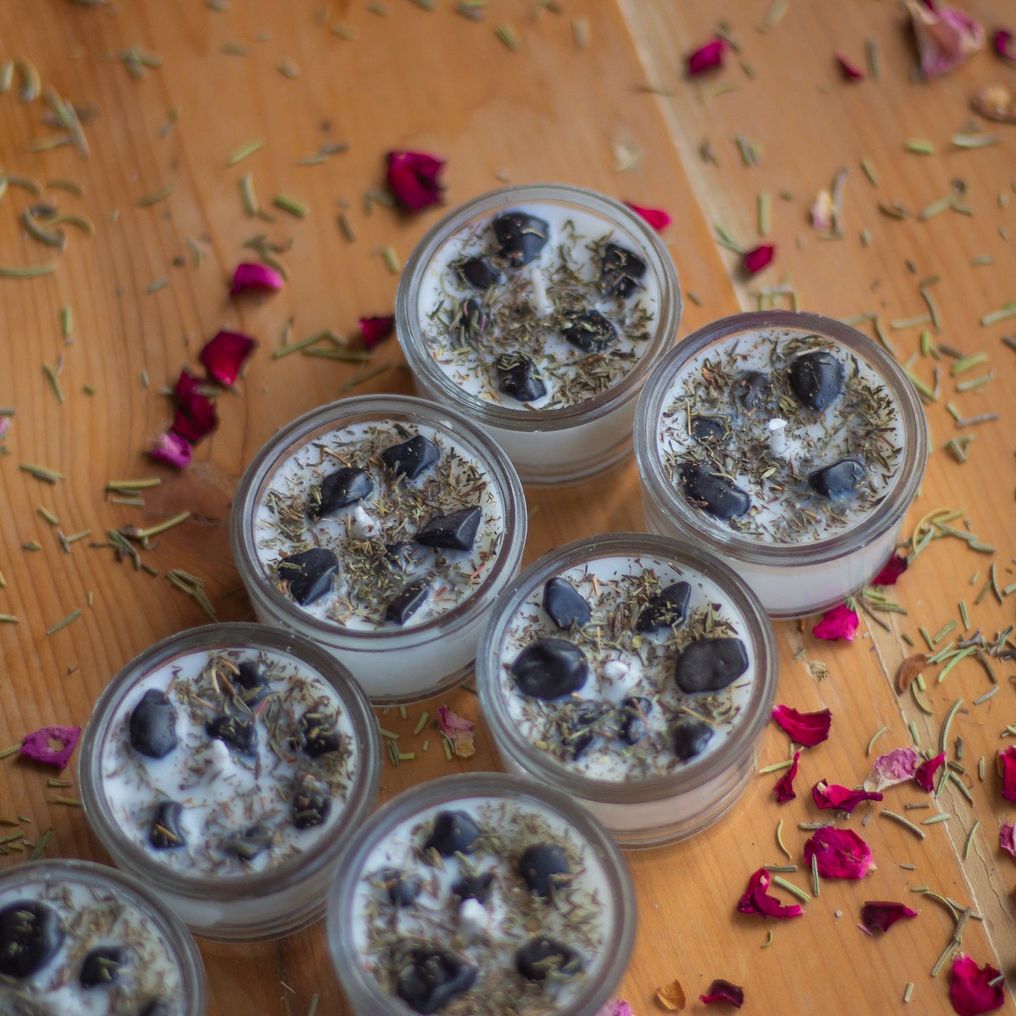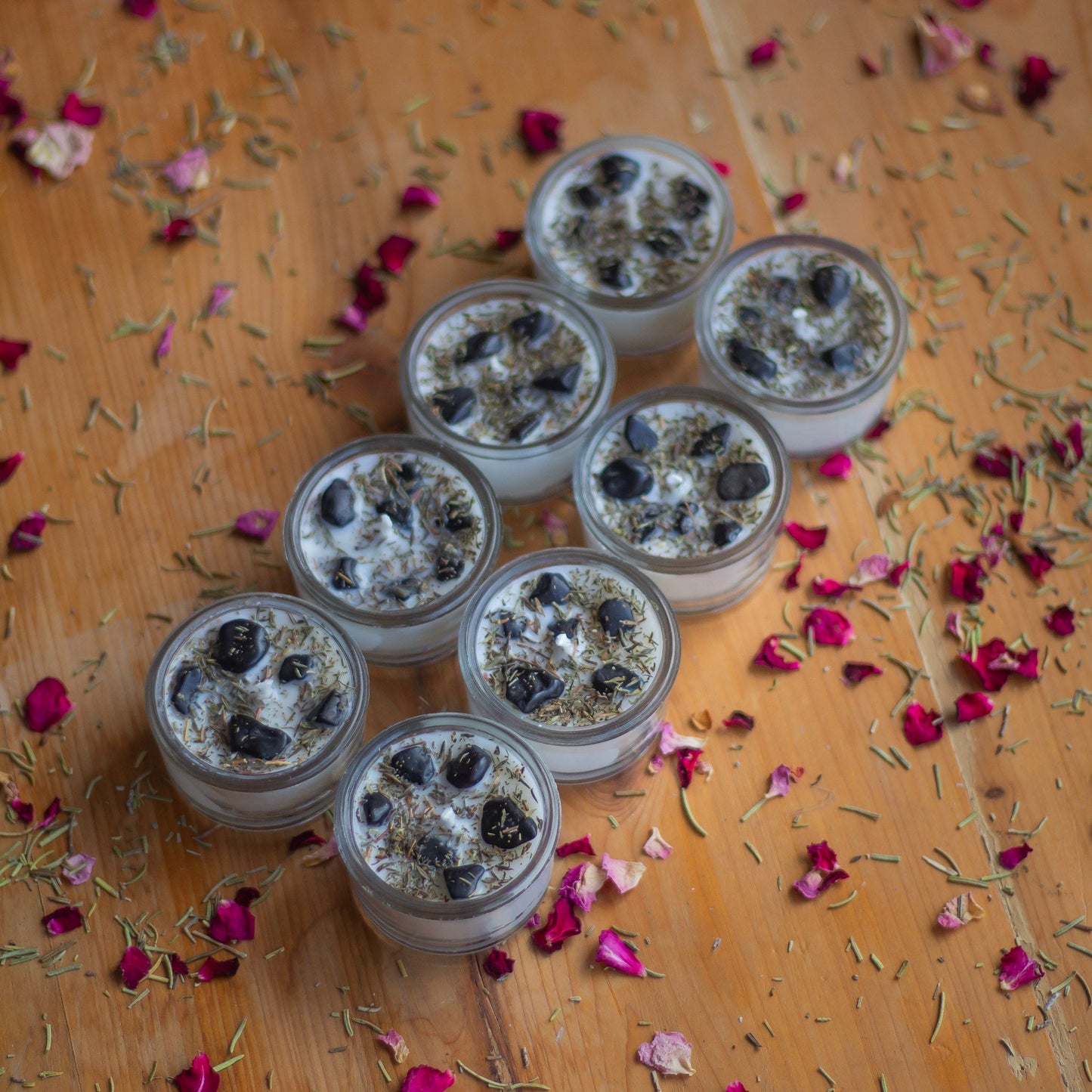 Black Tourmaline + Thyme Soy wax Glass Tealight Candle | Set of 8
