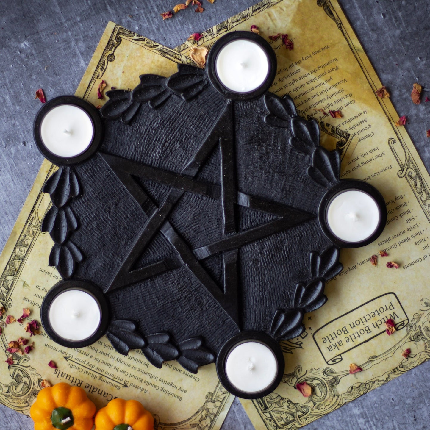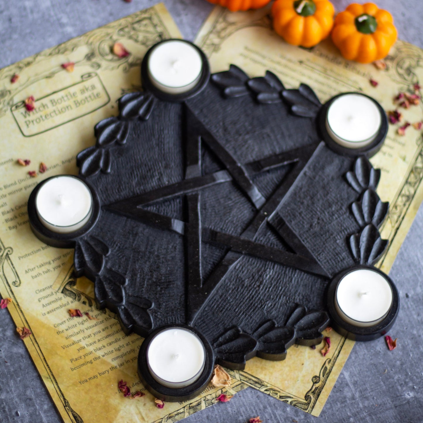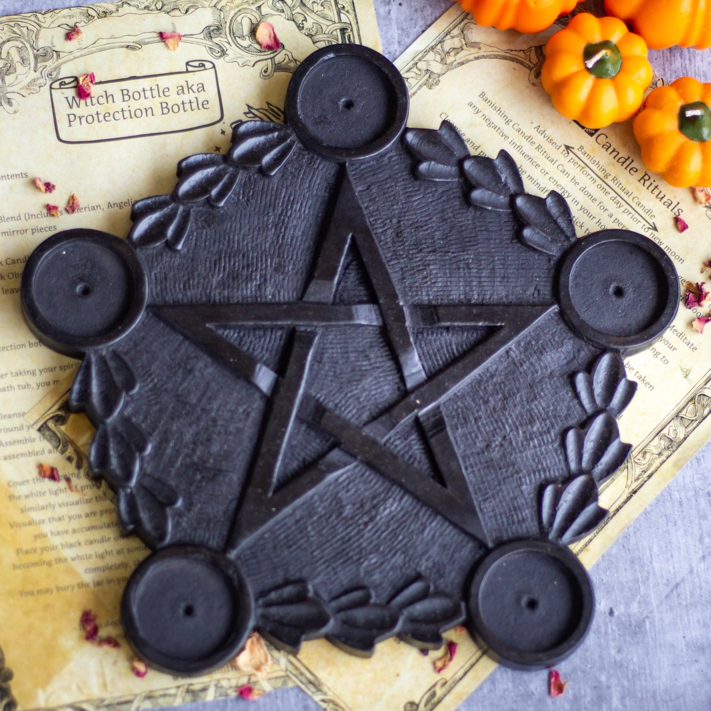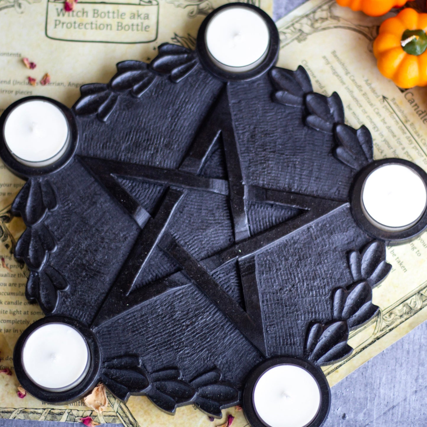 Black wooden Pentacle candle Holder