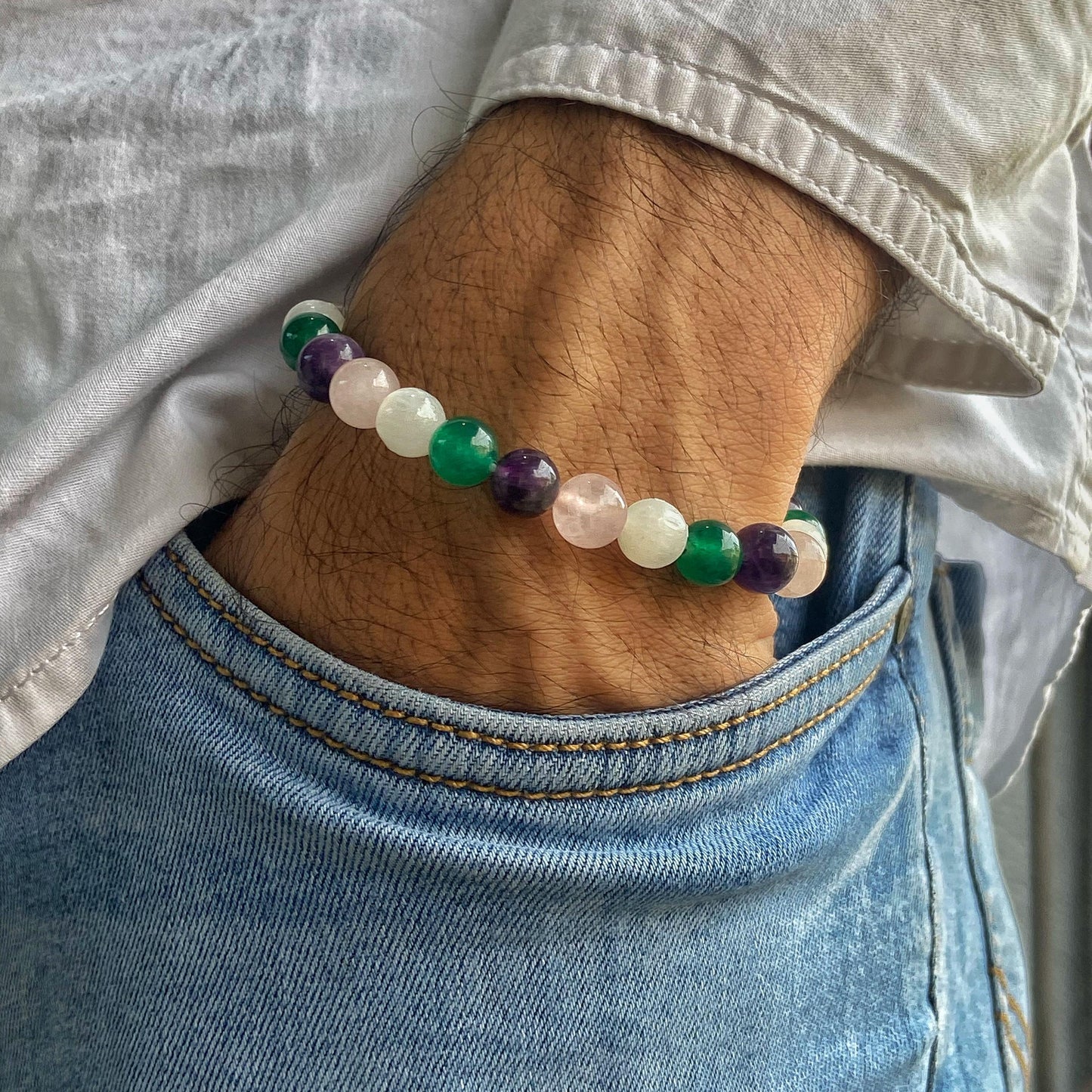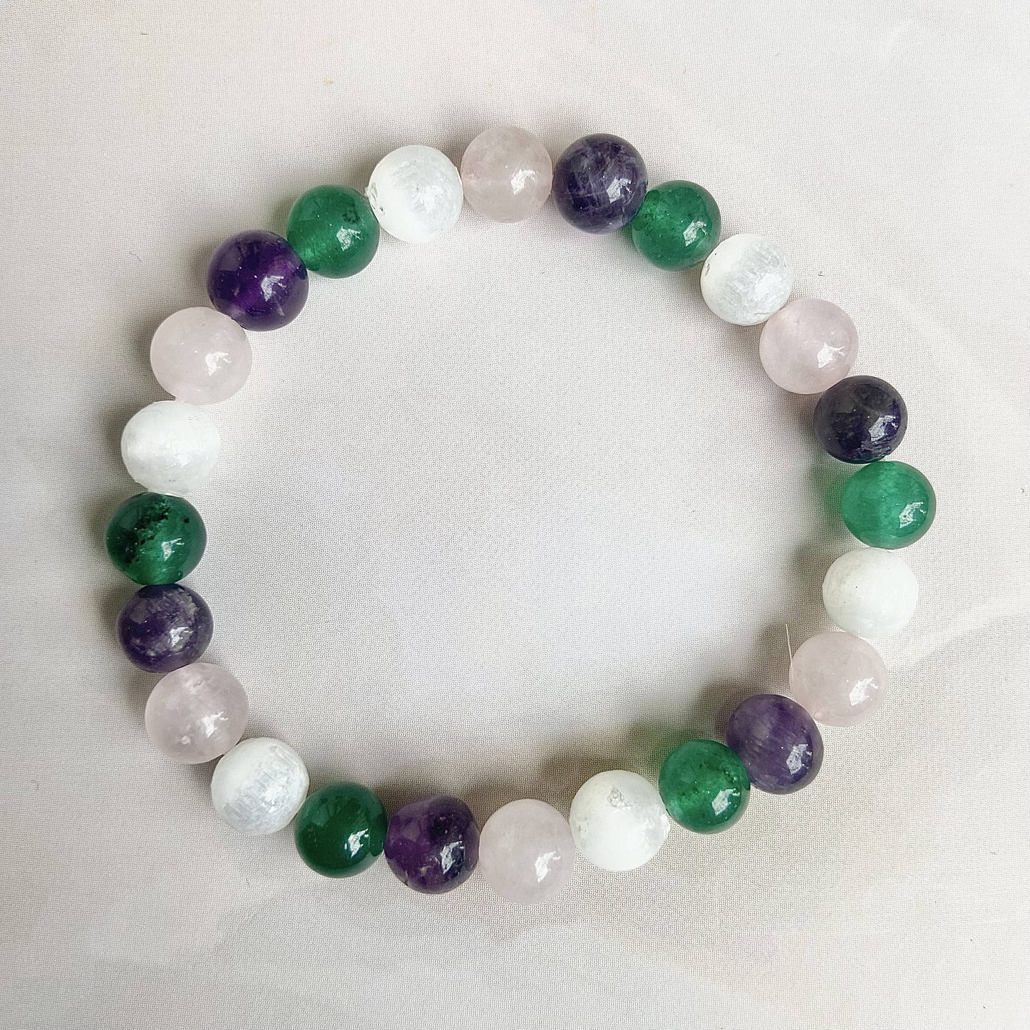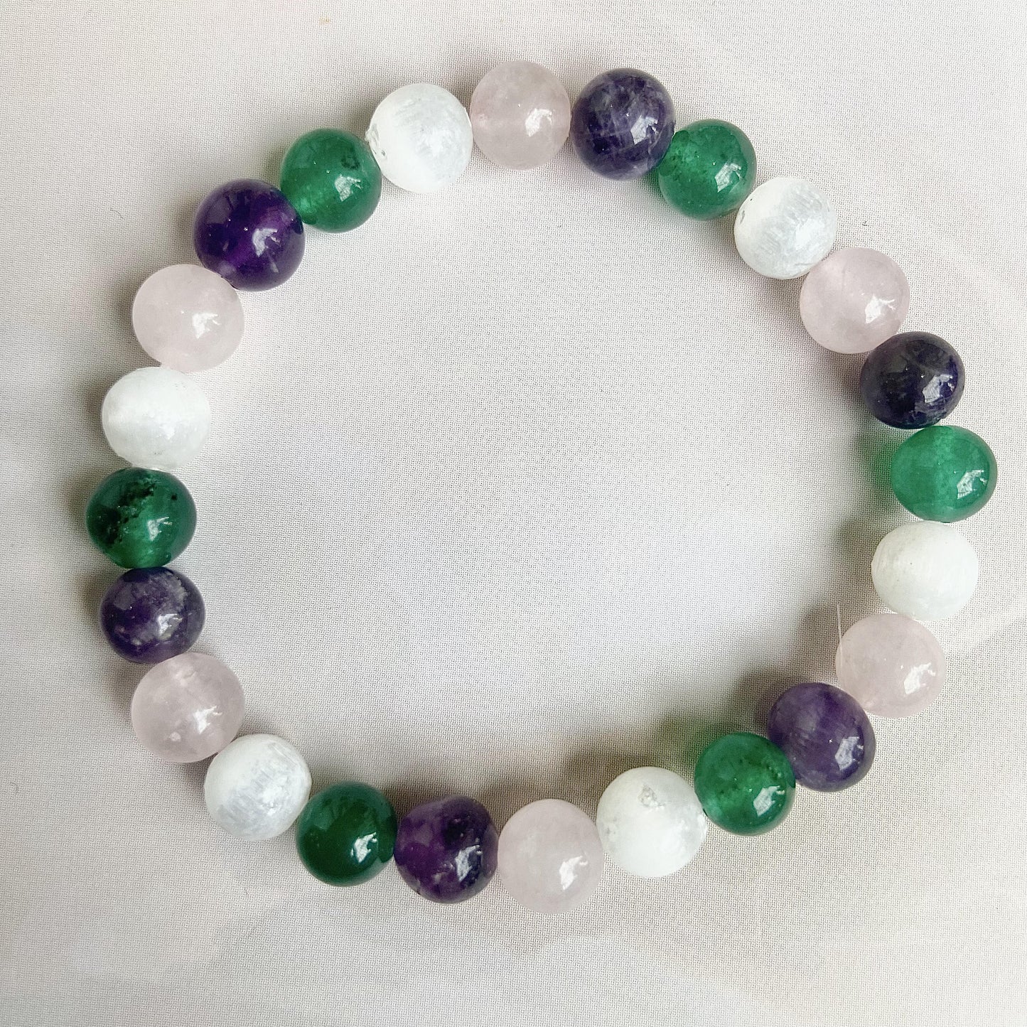 Combination of Rose quartz , Amethyst, Green Jade & Selenite beads