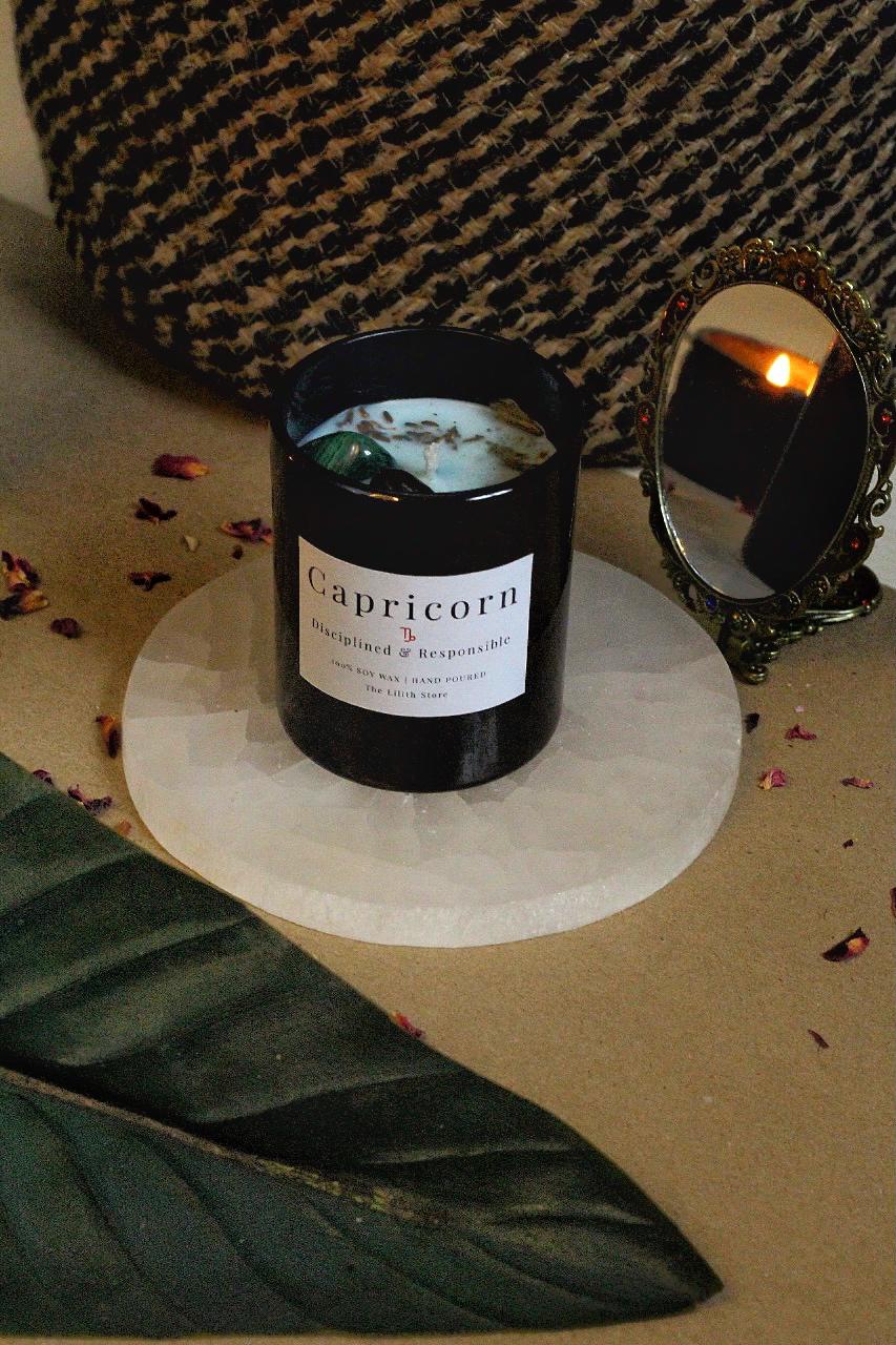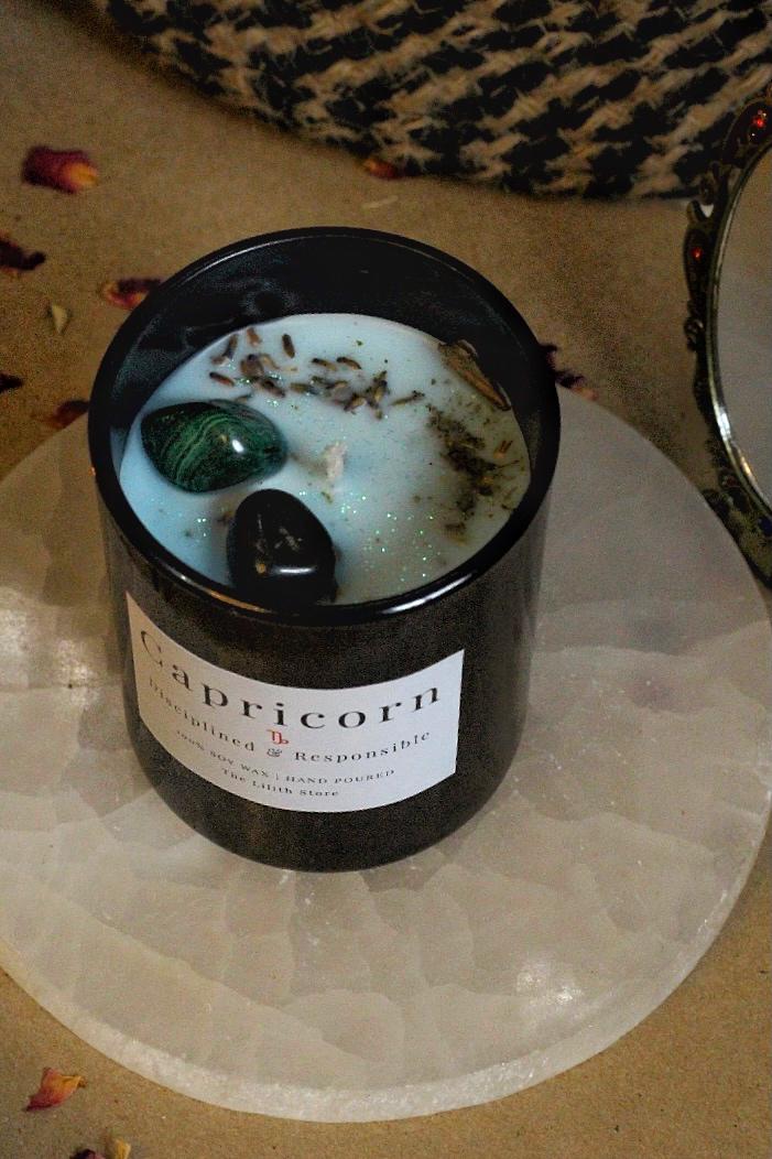 Capricorn Zodiac Scented Soy Candle infused with herbs & Crystals- 170 Gm