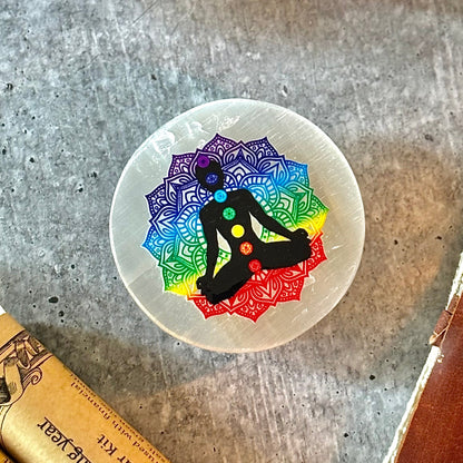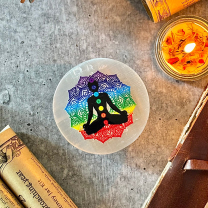 Chakra Symbols Selenite Plate – Energy Alignment & Spiritual Healing