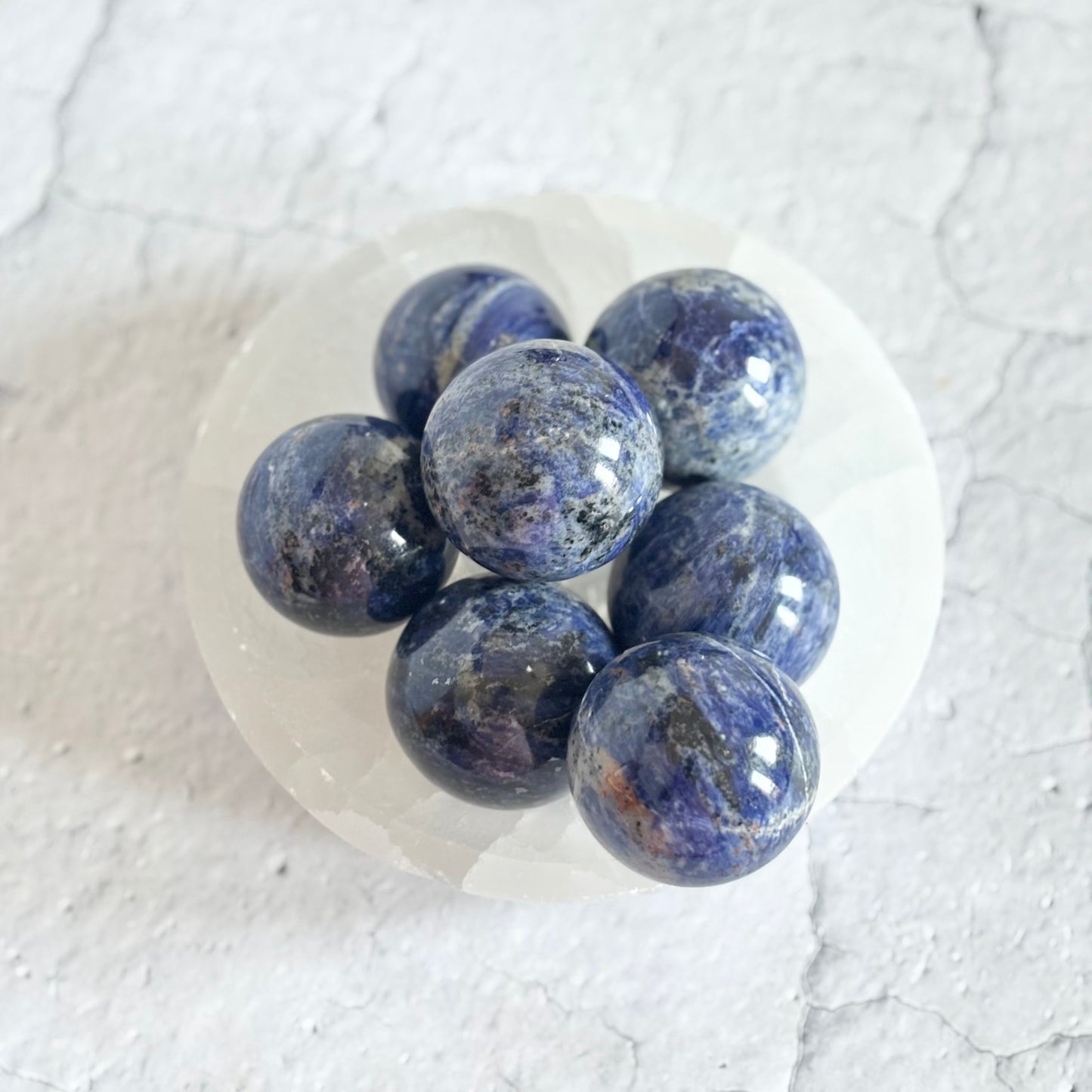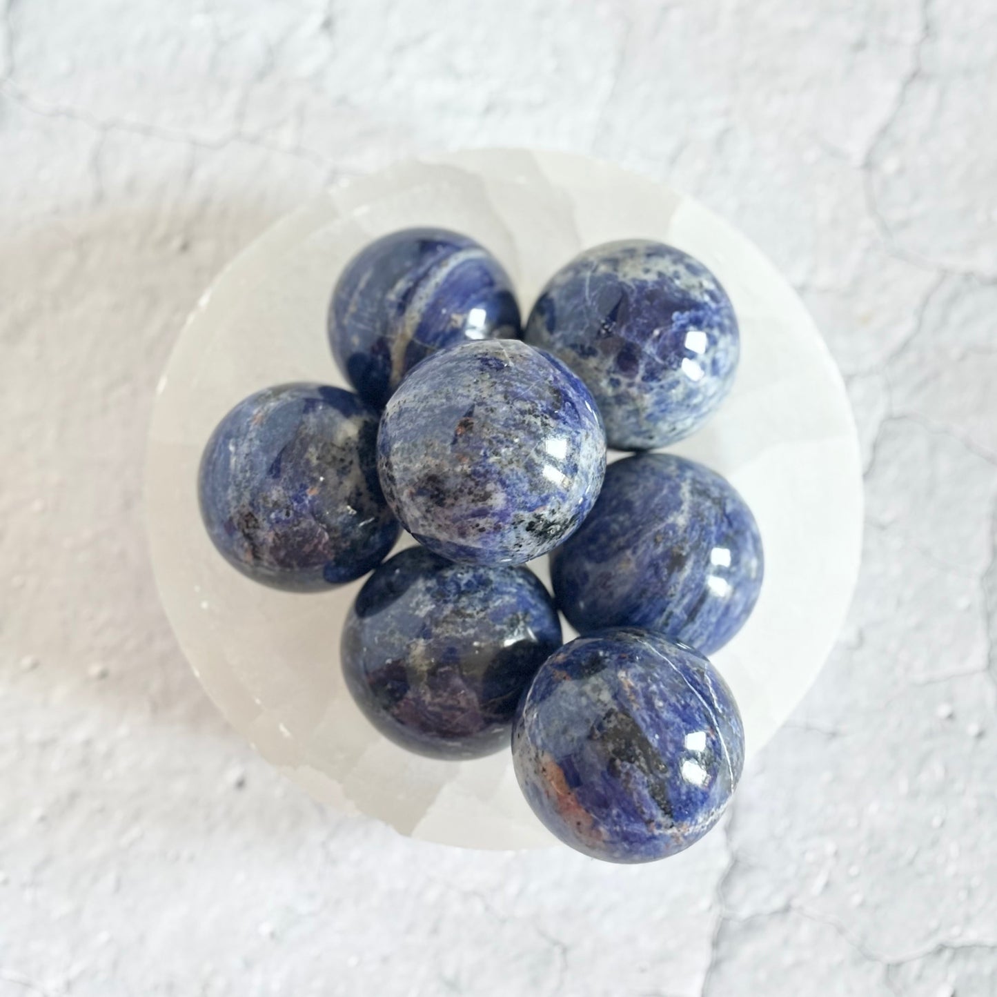 - Genuine Sodalite, hand-polished into a smooth sphere