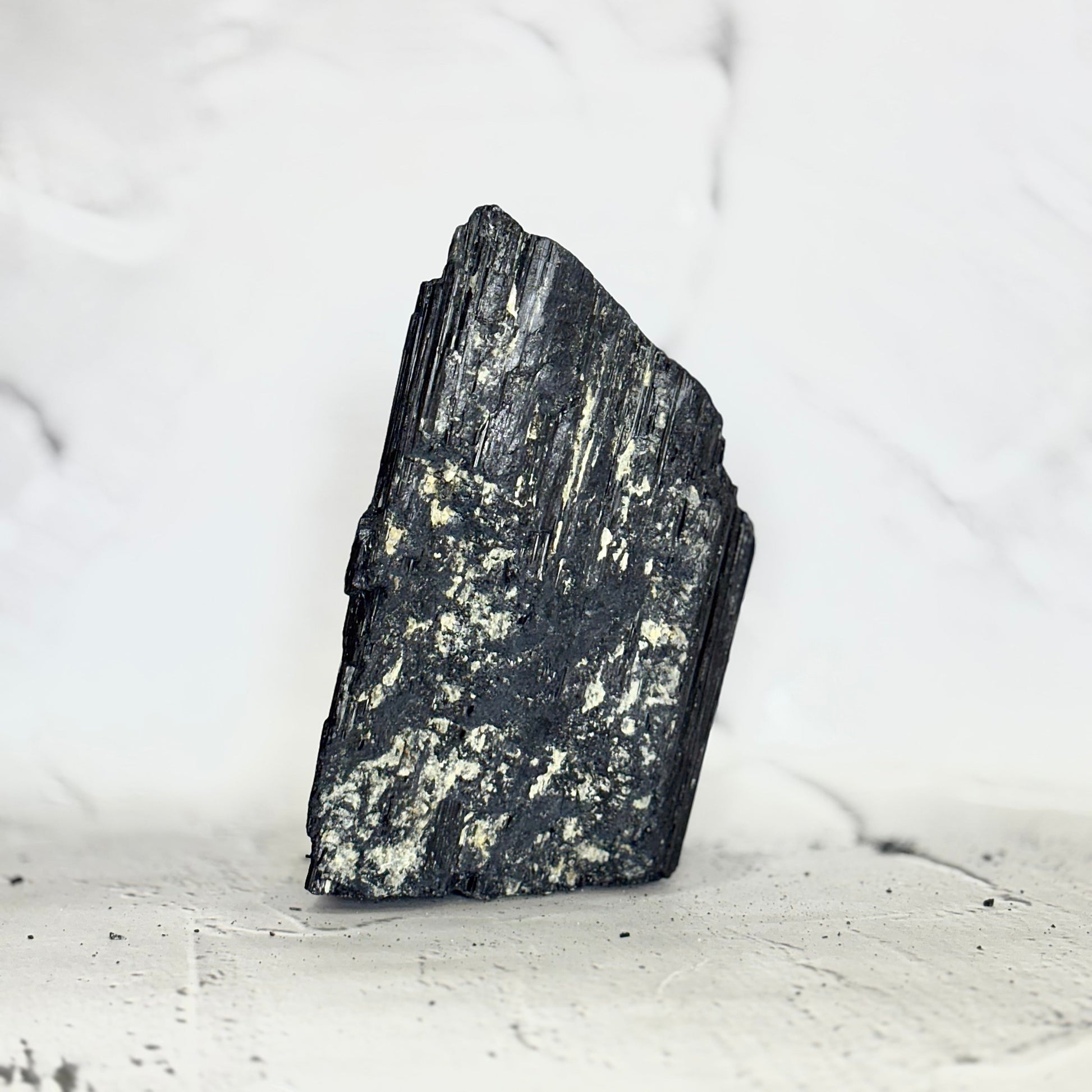 This substantial piece of raw Black Tourmaline weighs over 3.7 Kg and showcases the earth’s untamed beauty with rugged textures and natural inclusions. Known for its grounding and protective qualities, it’s ideal for placement near entryways, workspaces, or meditation areas. Minor surface chipping may occur during transit due to its raw and heavy nature—this is a natural characteristic of the stone.