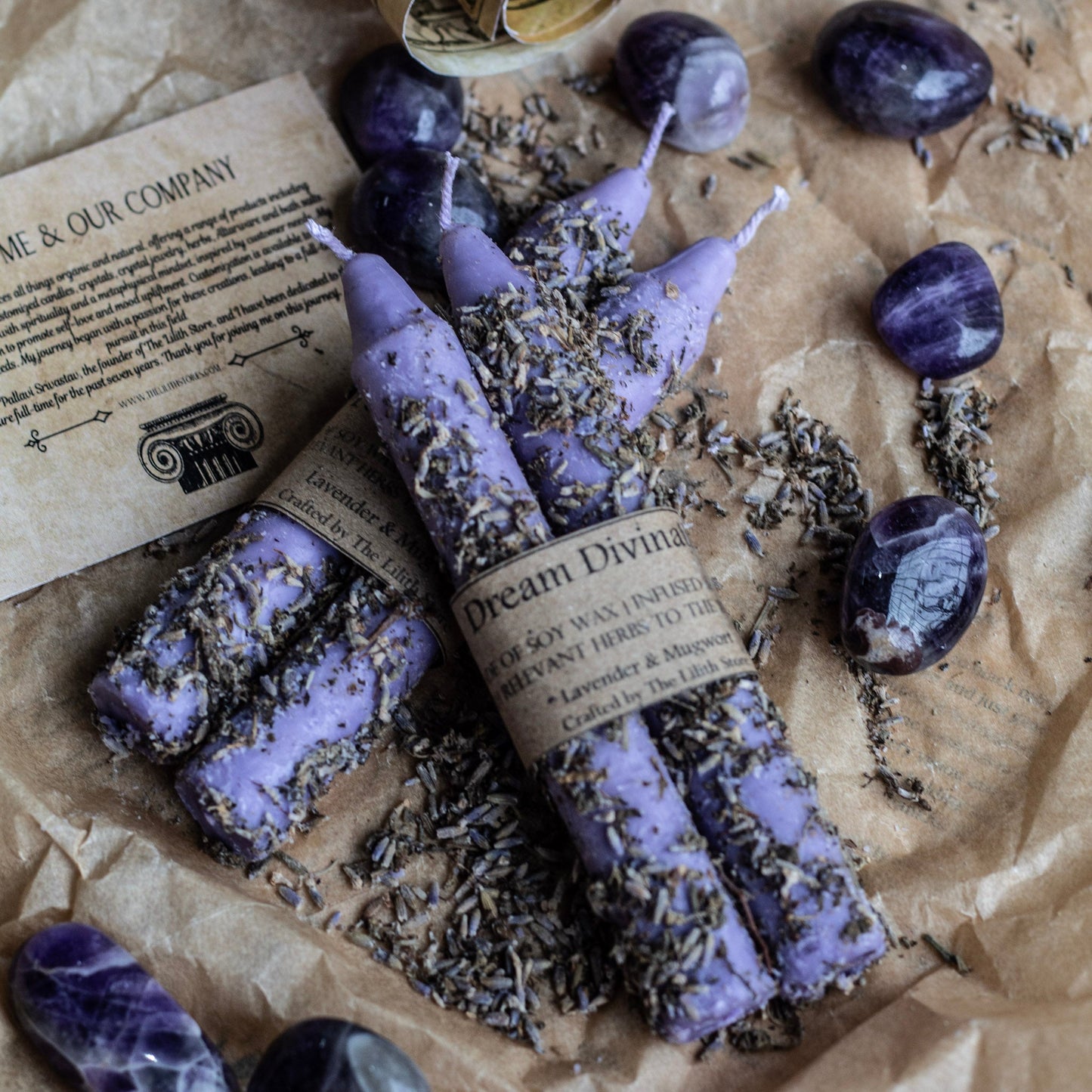 Dream & Divination - Pack of 2 Set | Taper Candle Infused with herbs | Soy Wax