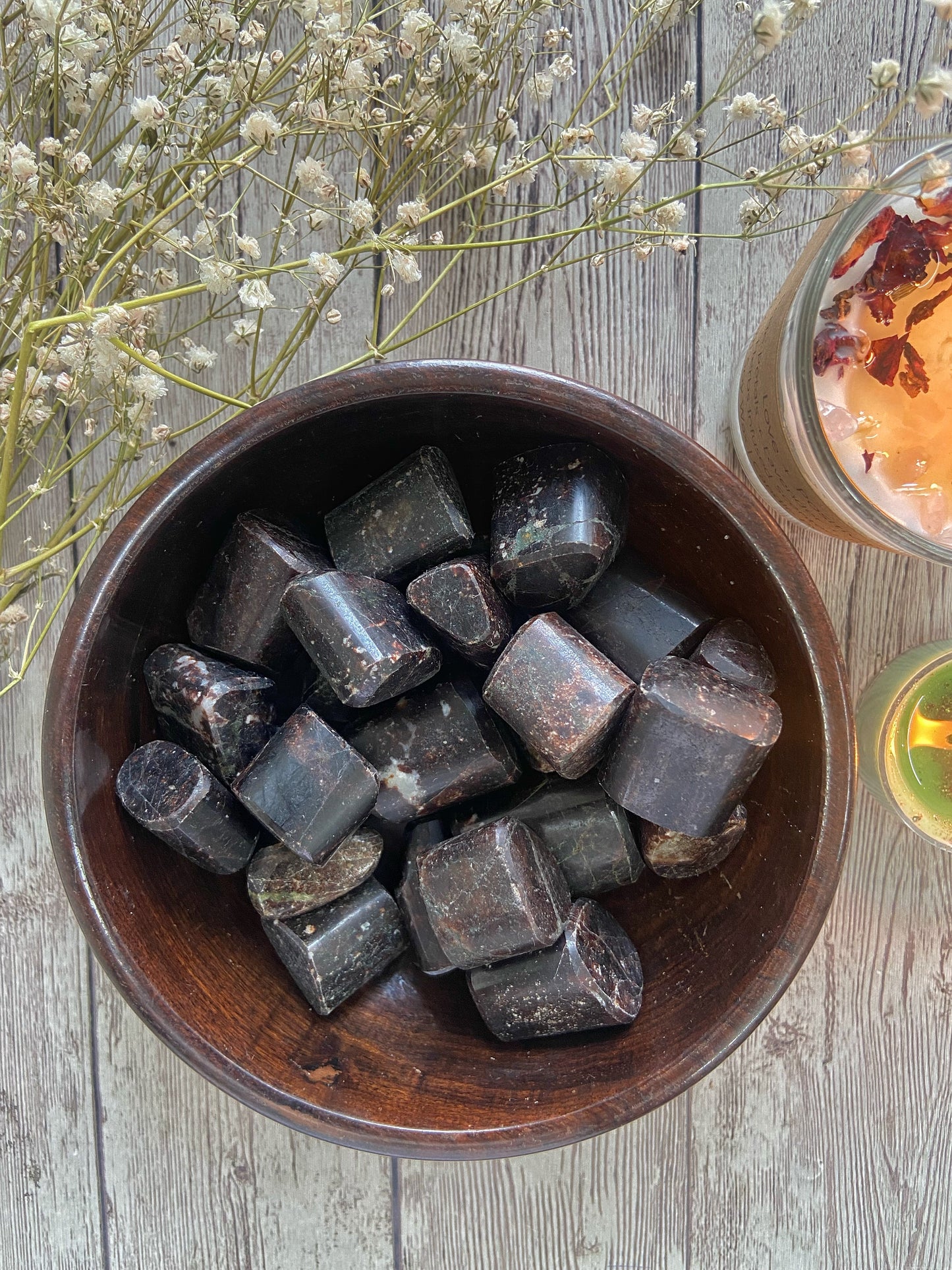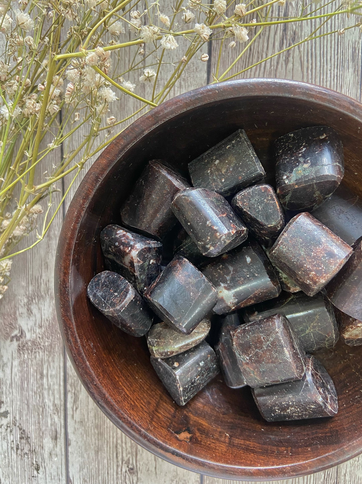 It revitalises, purifies and balances energy, bringing serenity or passion as appropriate. Inspires love and devotion. Garnet balances the sex drive and alleviates emotional disharmony. It activates and strengthens the survival instinct, bringing courage and hope.