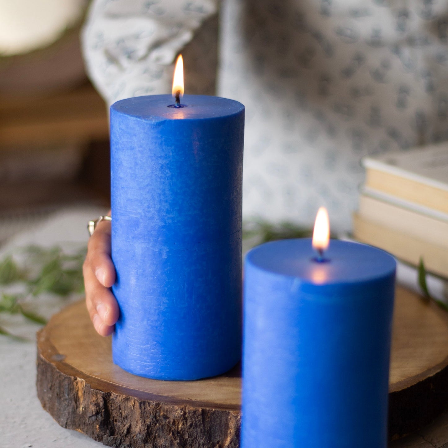 This Indigo Pillar Unscented Soy Candle is made with natural soy wax, providing a clean and eco-friendly burn. Its 3 inch diameter is perfect for creating a warm and inviting atmosphere in any space. Enjoy the subtle, non-overpowering glow and the benefits of using a natural and sustainable product.