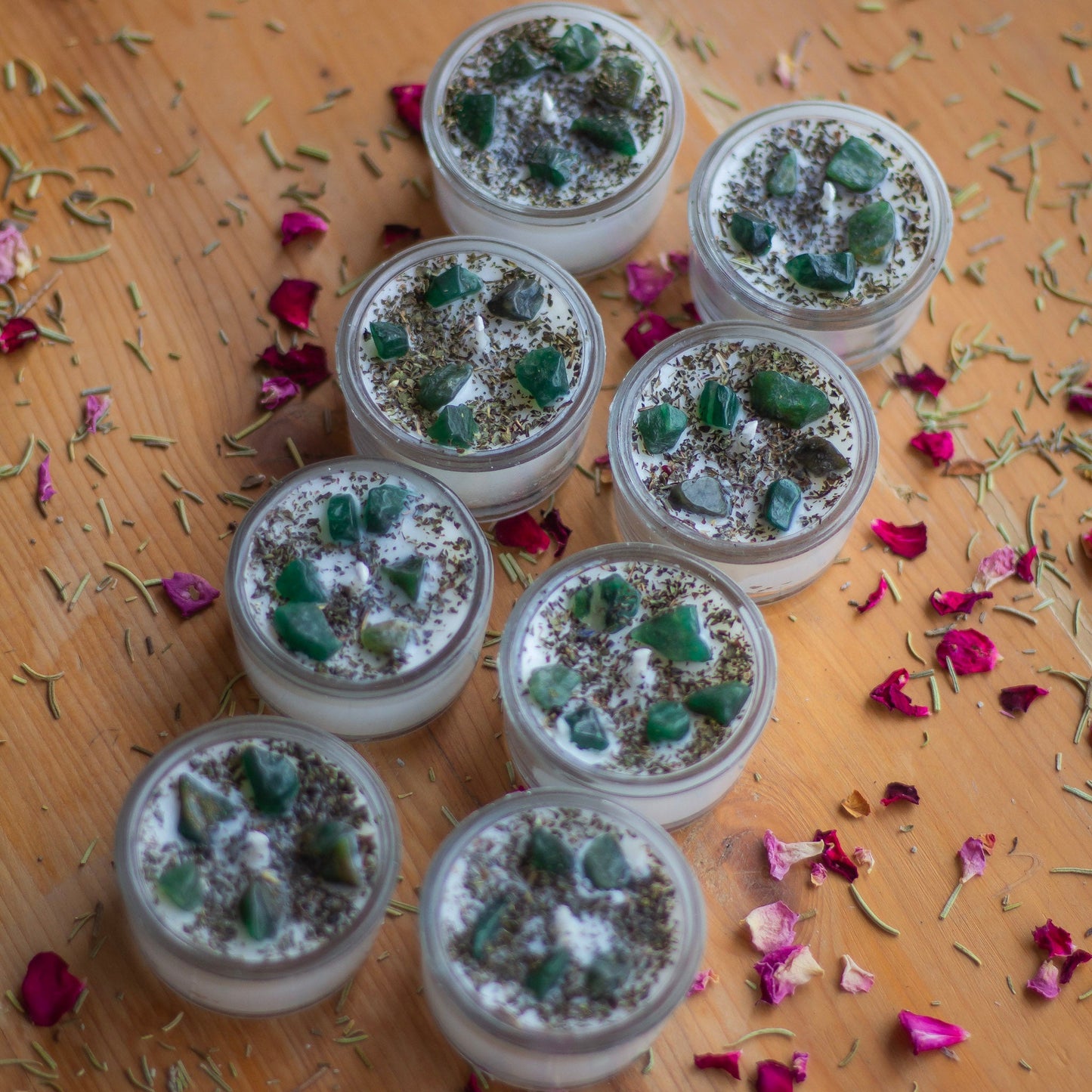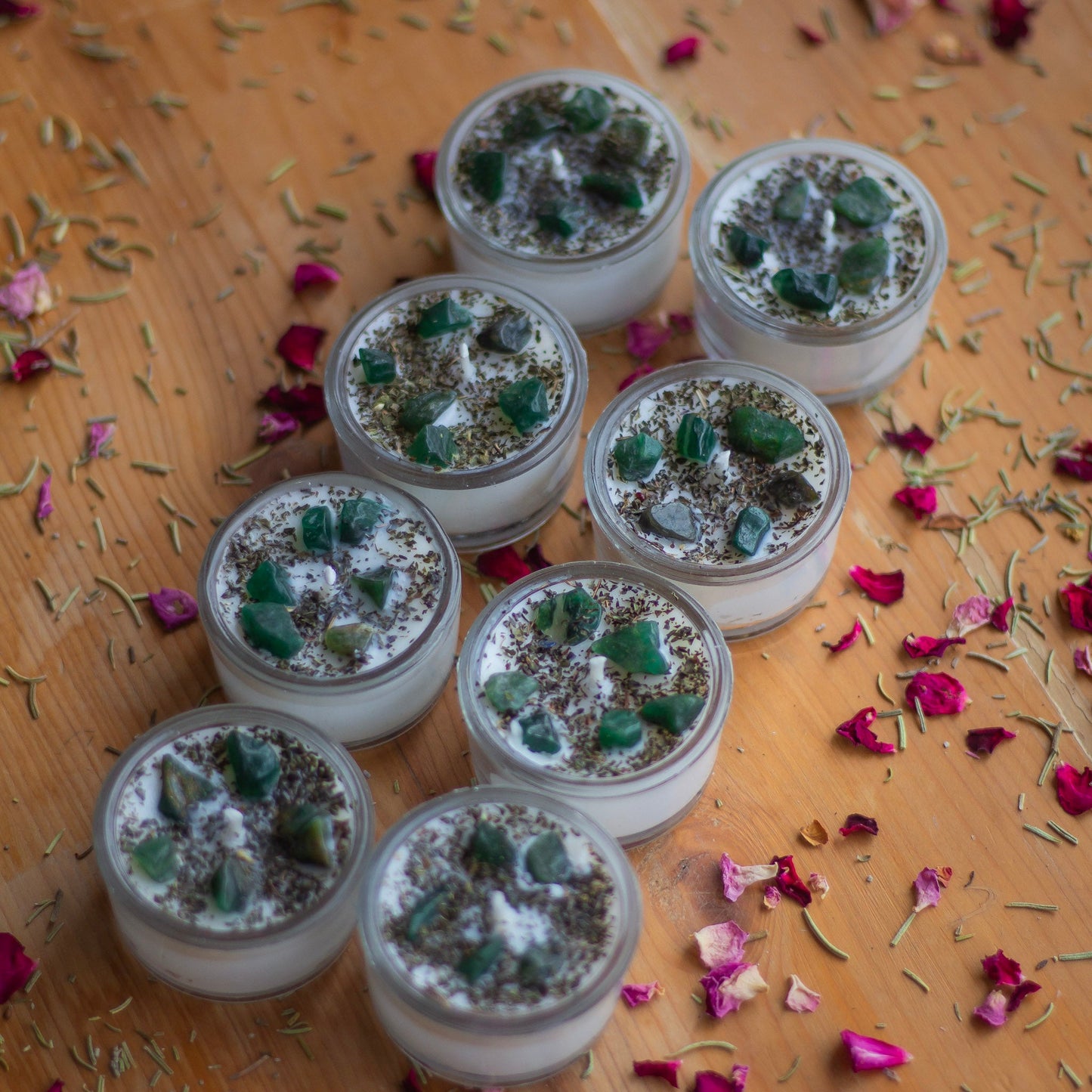 Rose Petals + Rose Quartz + Pink Scented Soy Wax Glass Tealight Candles- Set of 8