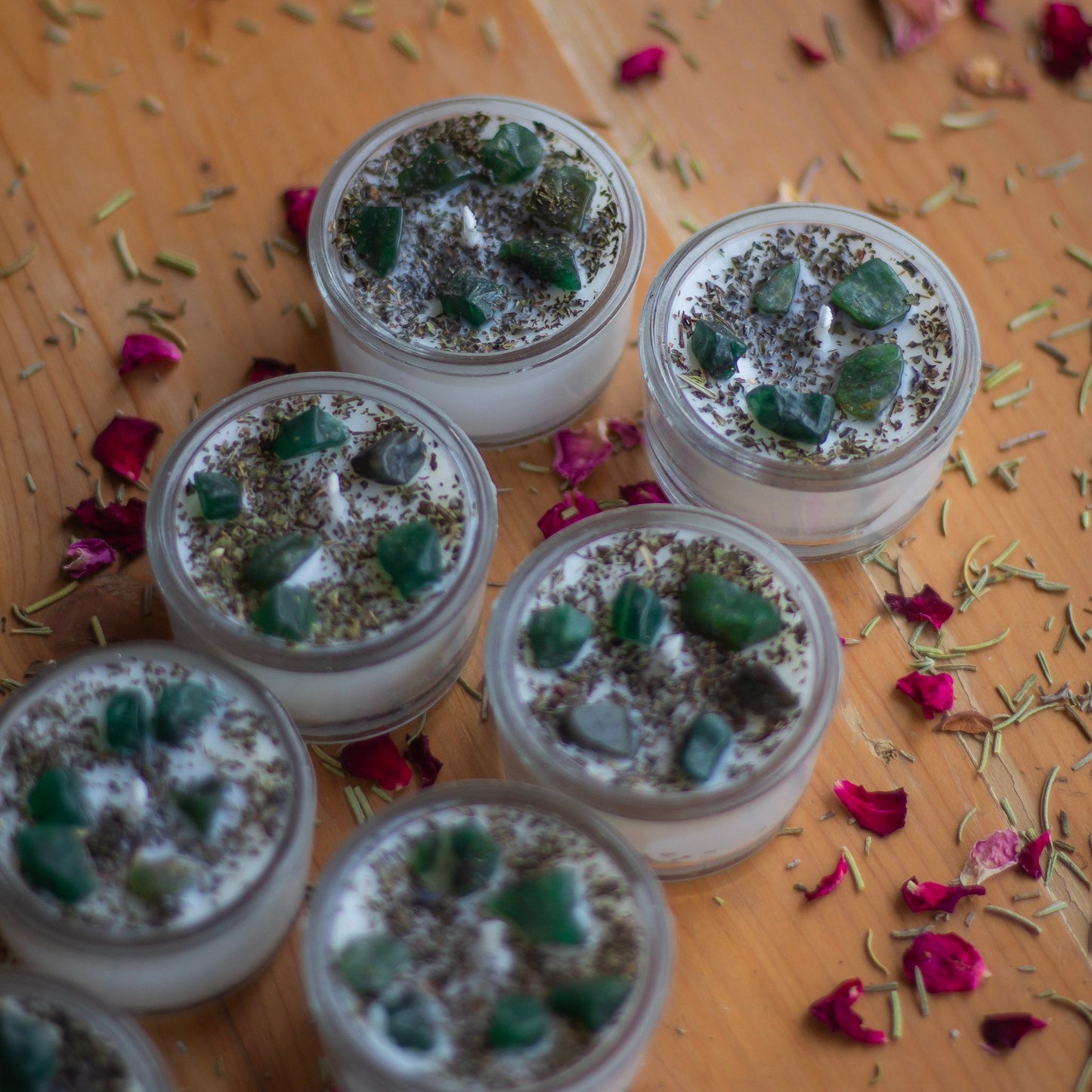 Lavender Buds + Amethyst + Lavender colour Scented Soy Wax Glass Tealight Candle - Set of 8