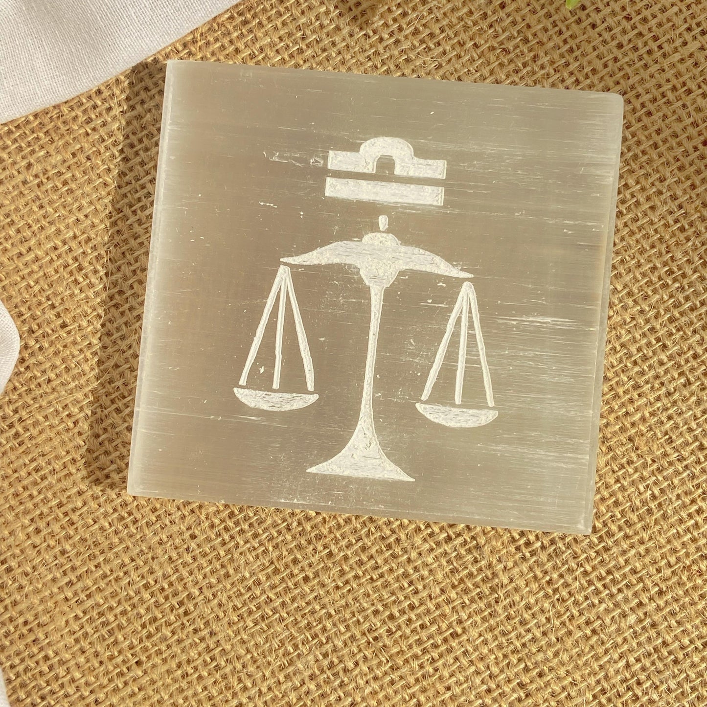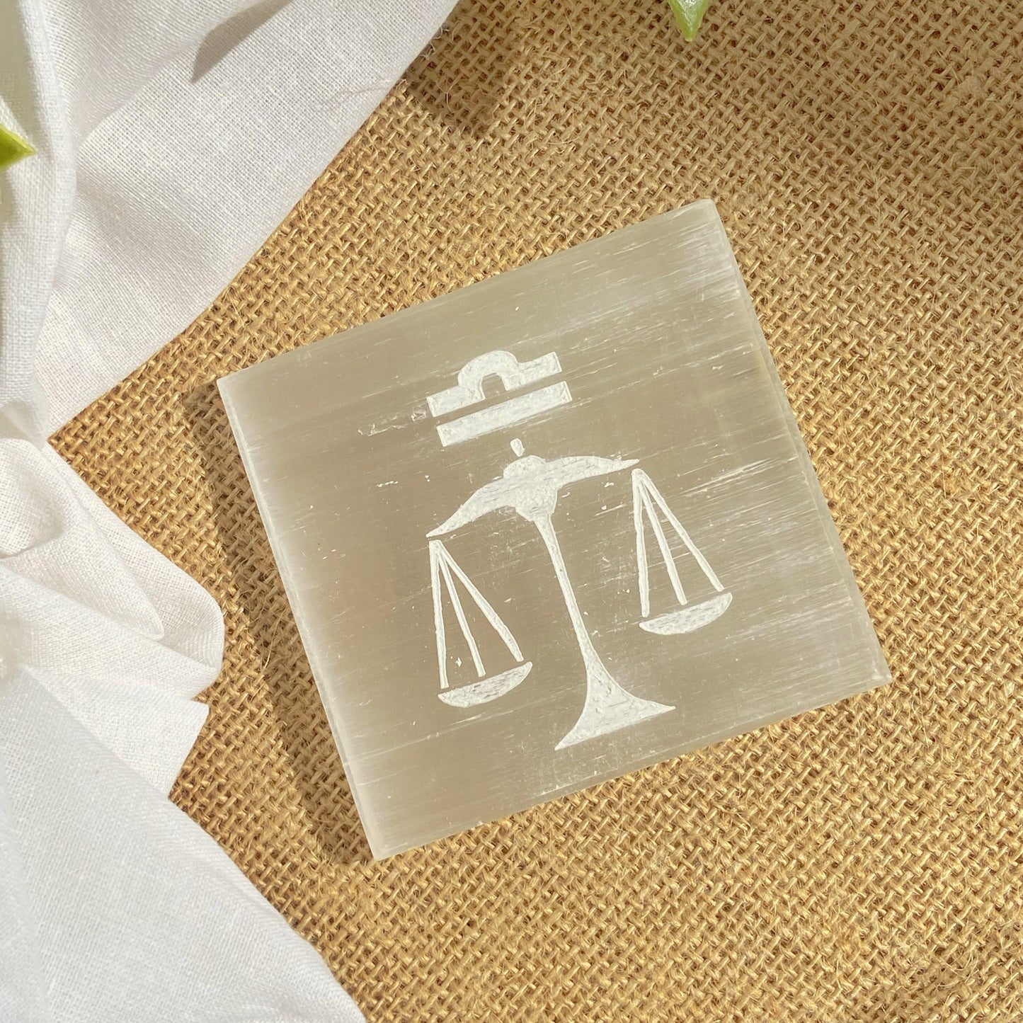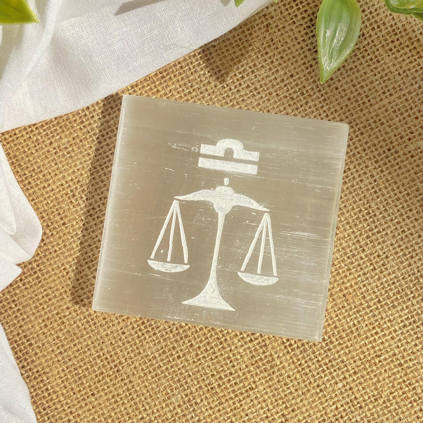 Libra Zodiac Carved Selenite Plate - 3 Inches