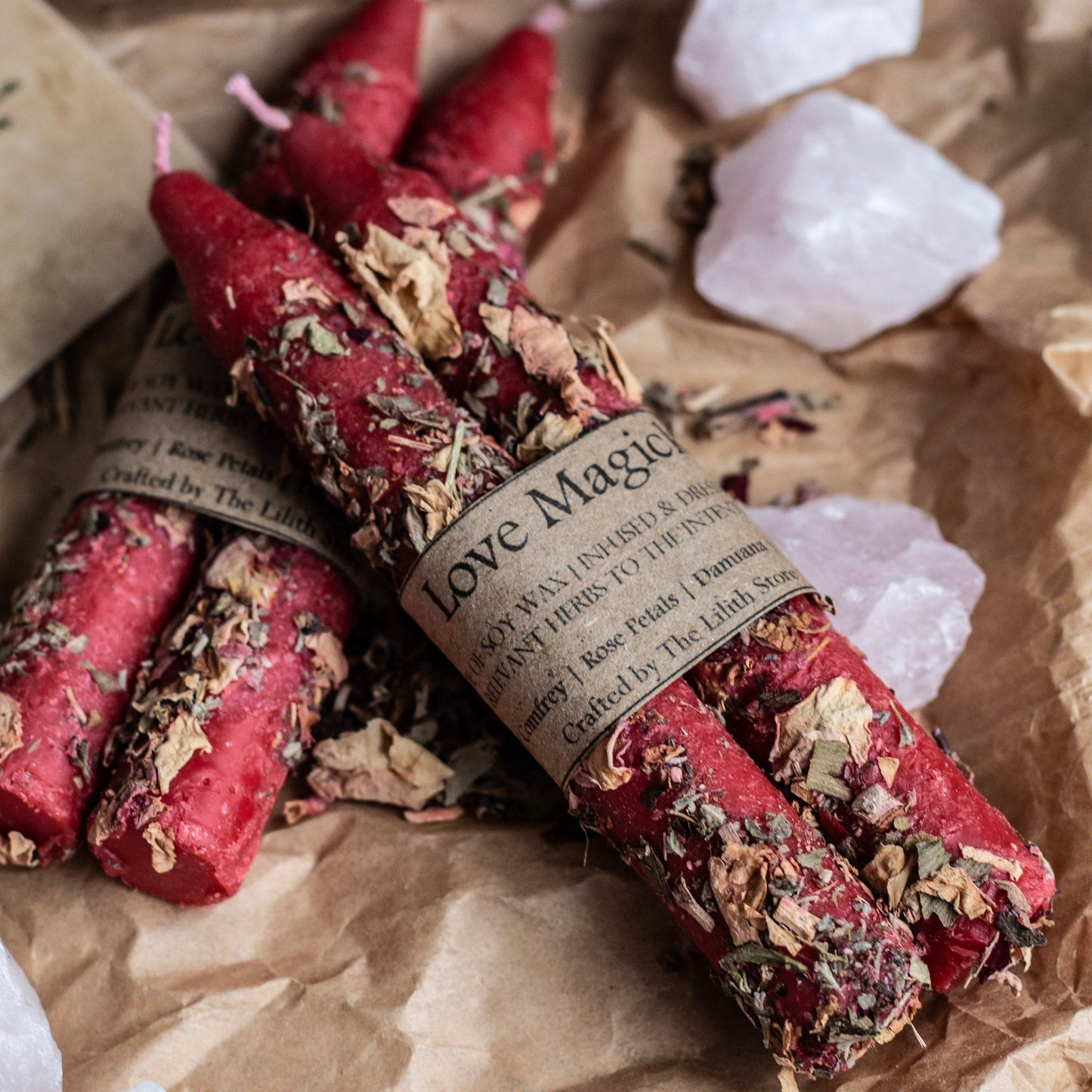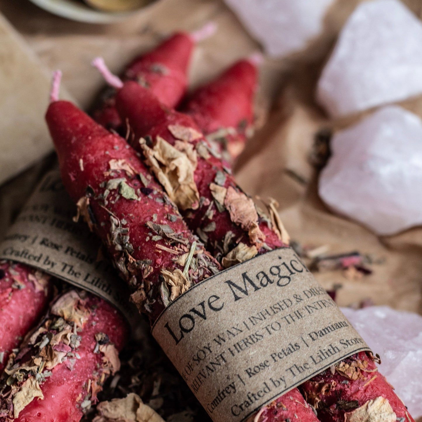 Love Spell - Pack of 2 Set | Taper Candle Infused with herbs | Soy Wax
