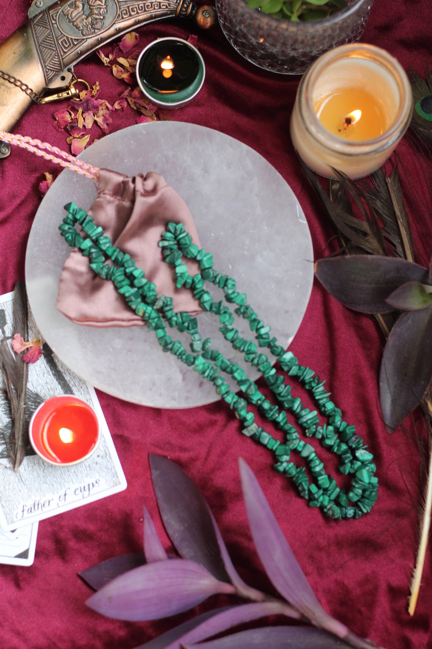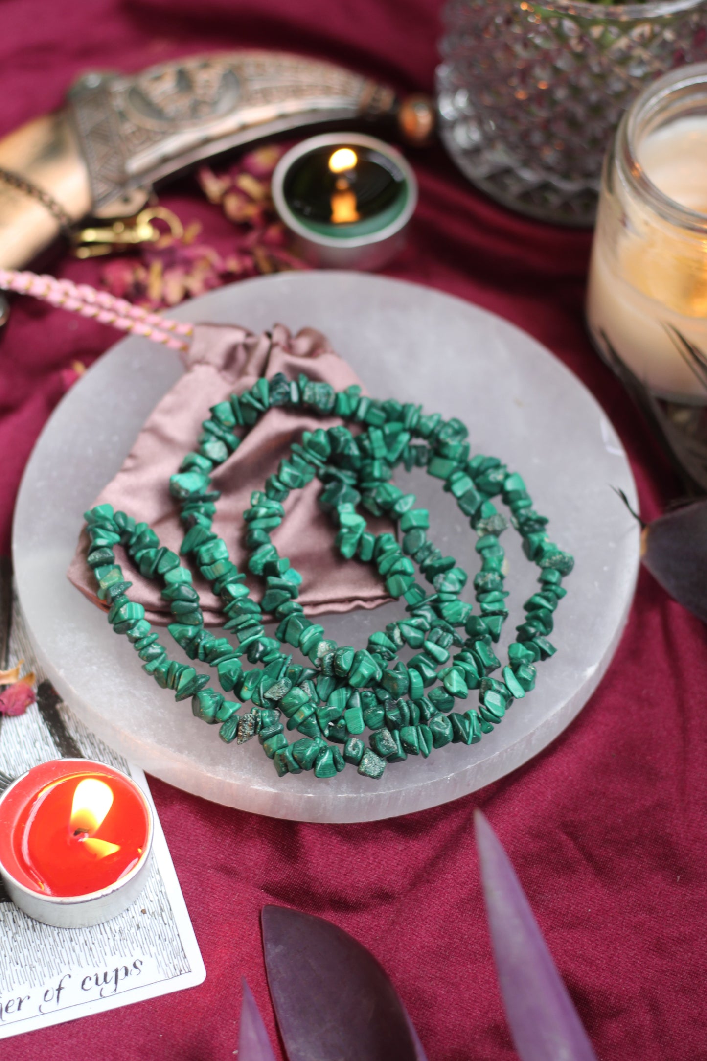 Malachite Crystal Chips String (Mala) - Stone of Protection & Encouragement