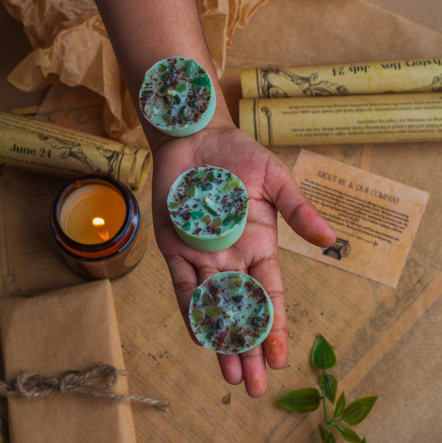 Peppermint + Green Aventurine + Green Colour Scented Soy Wax Tealight Refill Candles- Set of 8