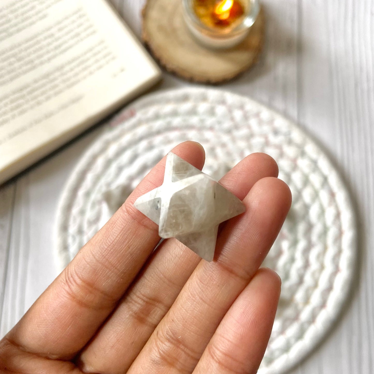 Rainbow Moonstone Merkaba Crystal Carving | Cultivates Compassion & empathy