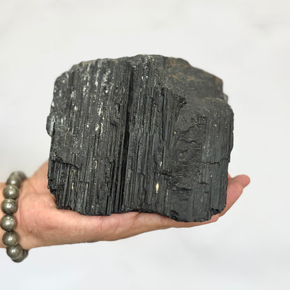 This substantial piece of raw Black Tourmaline weighs over 2.5 Kg and showcases the earth’s untamed beauty with rugged textures and natural inclusions. Known for its grounding and protective qualities, it’s ideal for placement near entryways, workspaces, or meditation areas. Minor surface chipping may occur during transit due to its raw and heavy nature—this is a natural characteristic of the stone.