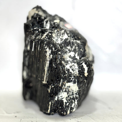 This substantial piece of raw Black Tourmaline weighs over 10 Kg and showcases the earth’s untamed beauty with rugged textures and natural inclusions. Known for its grounding and protective qualities, it’s ideal for placement near entryways, workspaces, or meditation areas. Minor surface chipping may occur during transit due to its raw and heavy nature—this is a natural characteristic of the stone.