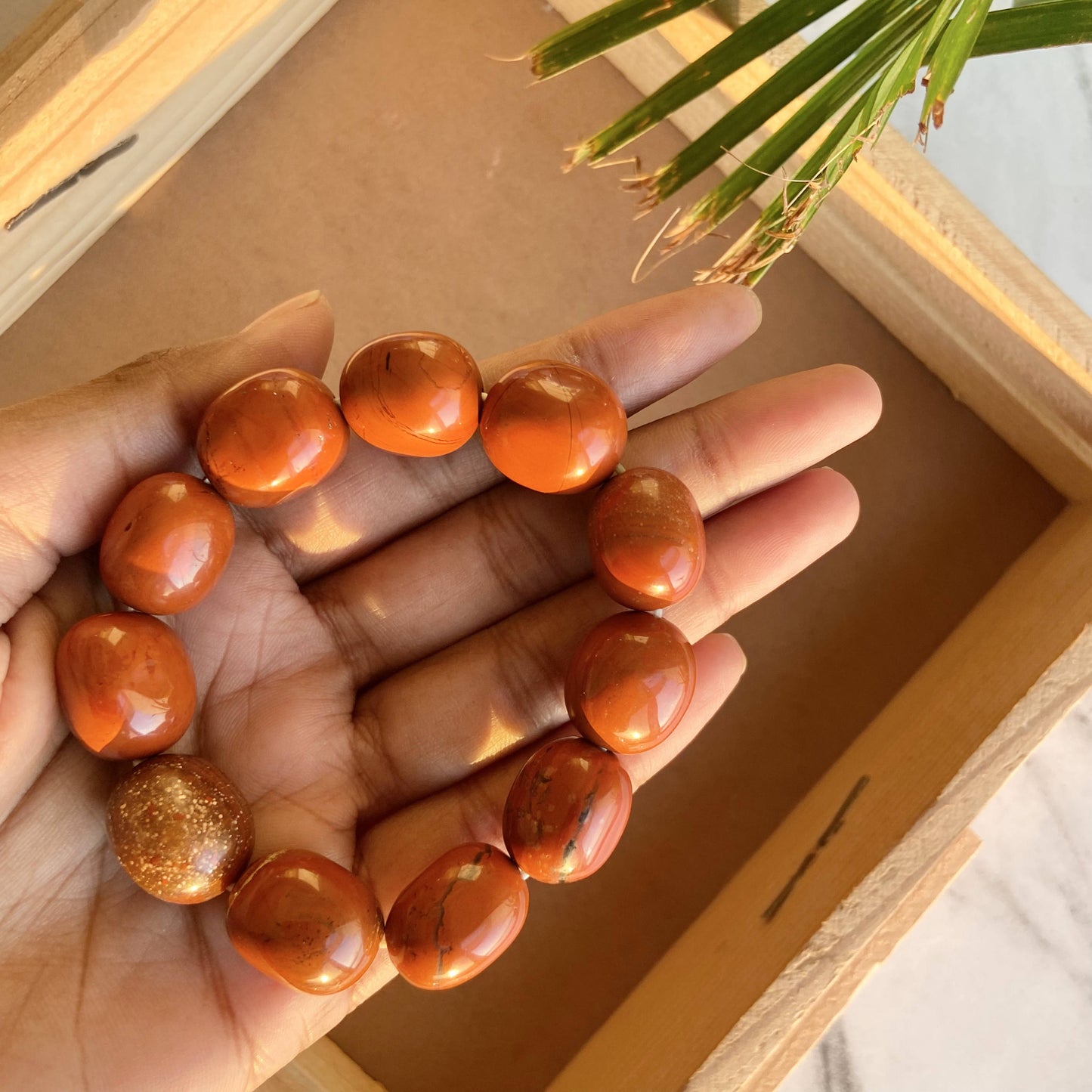 Wear or carry Red Jasper to alleviate stress and reconnect with Earth’s grounding energies. Its cleansing effect eliminates negativity, returning it to its source, and stabilizing the aura. It is an ideal worry or rubbing stone for soothing the nerves and restoring balance.