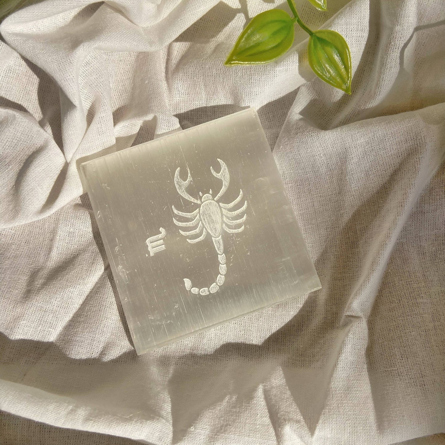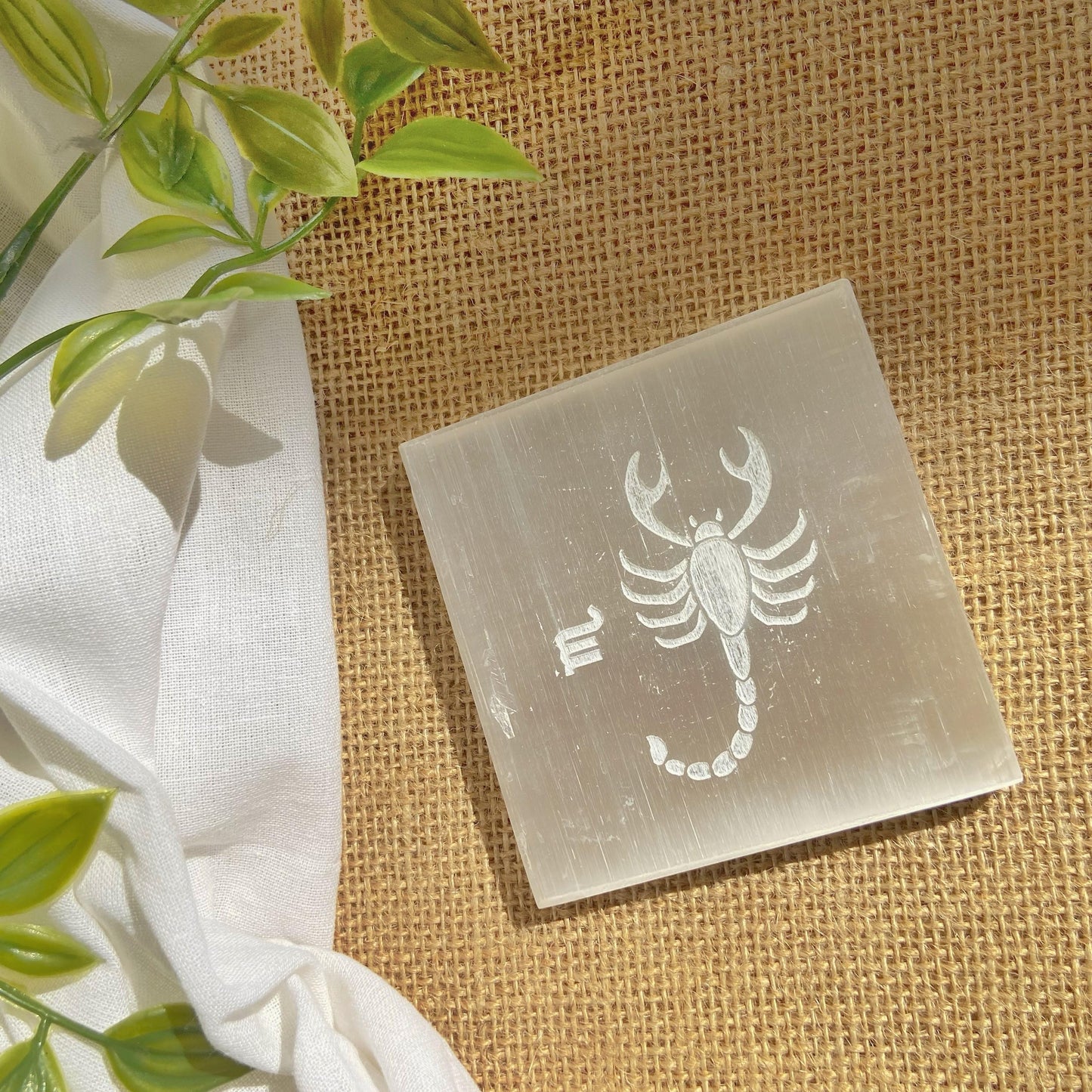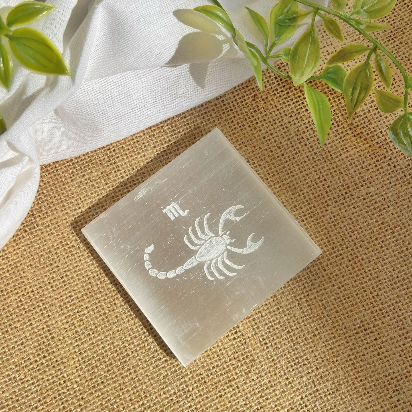 Scorpio Zodiac Carved Selenite Plate - 3 Inches