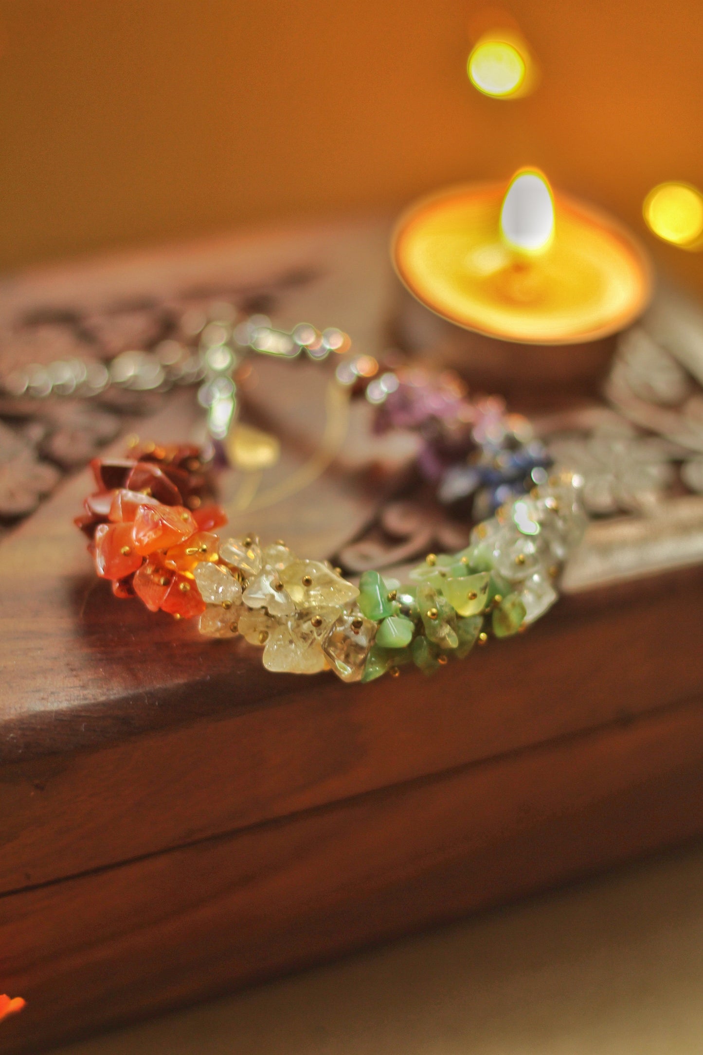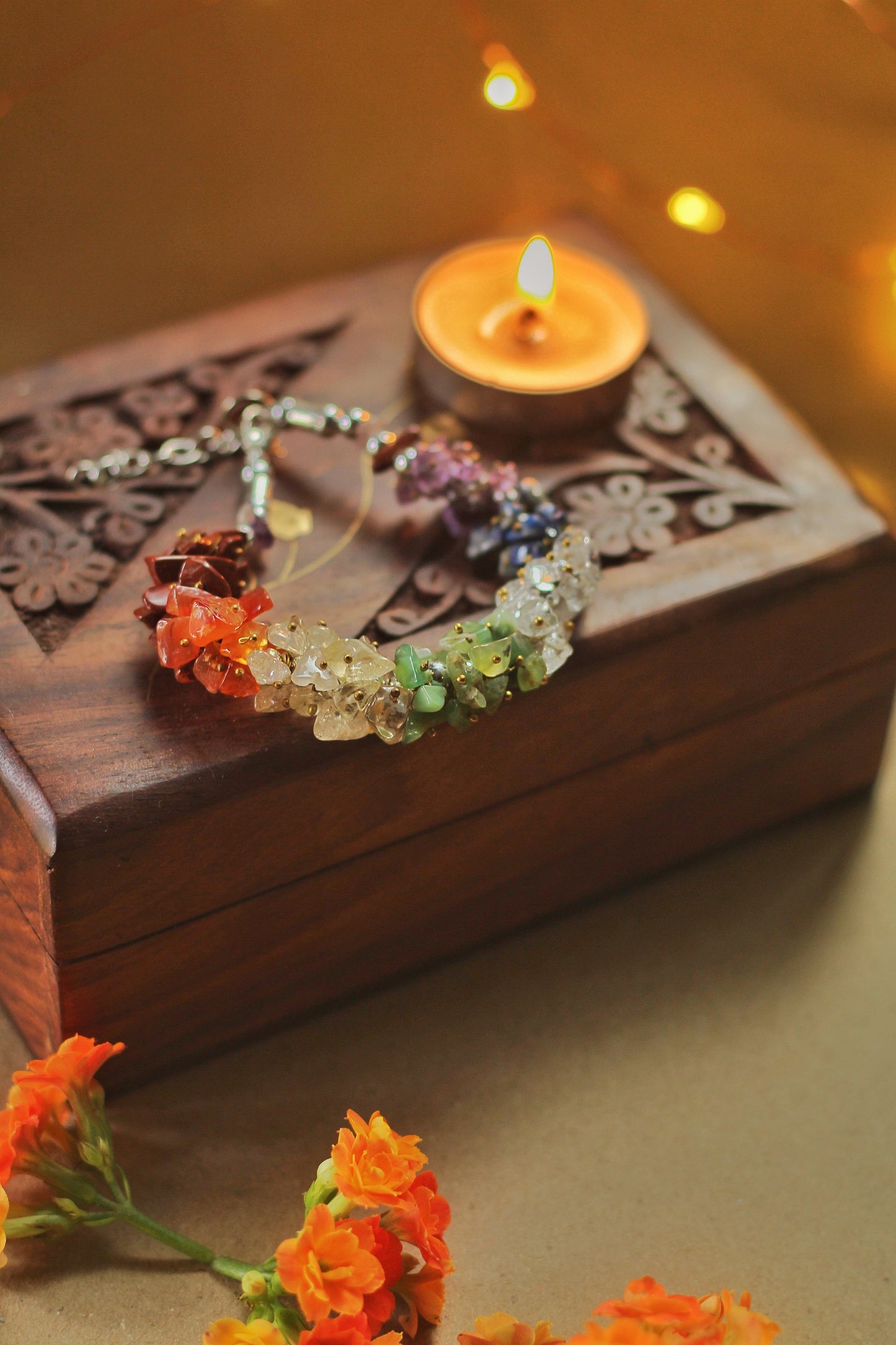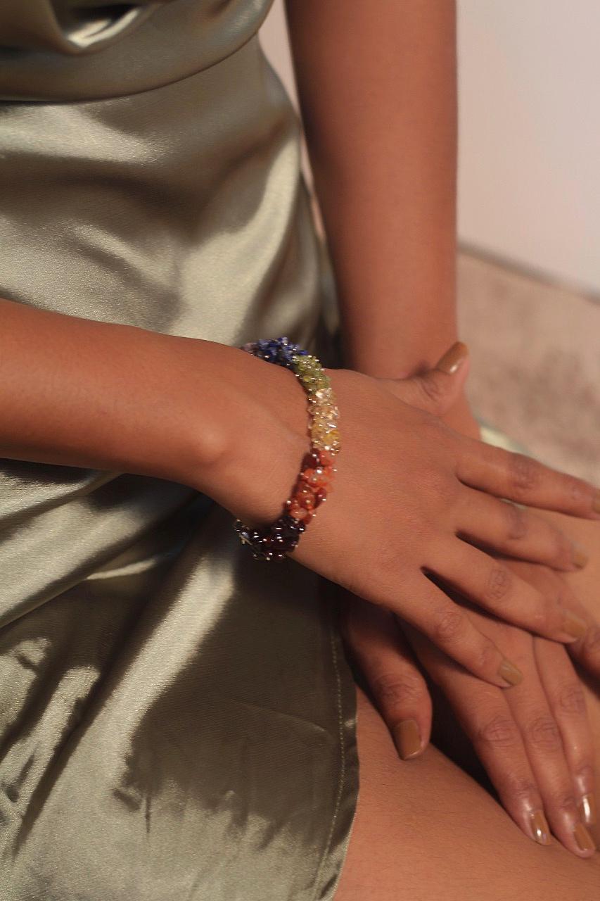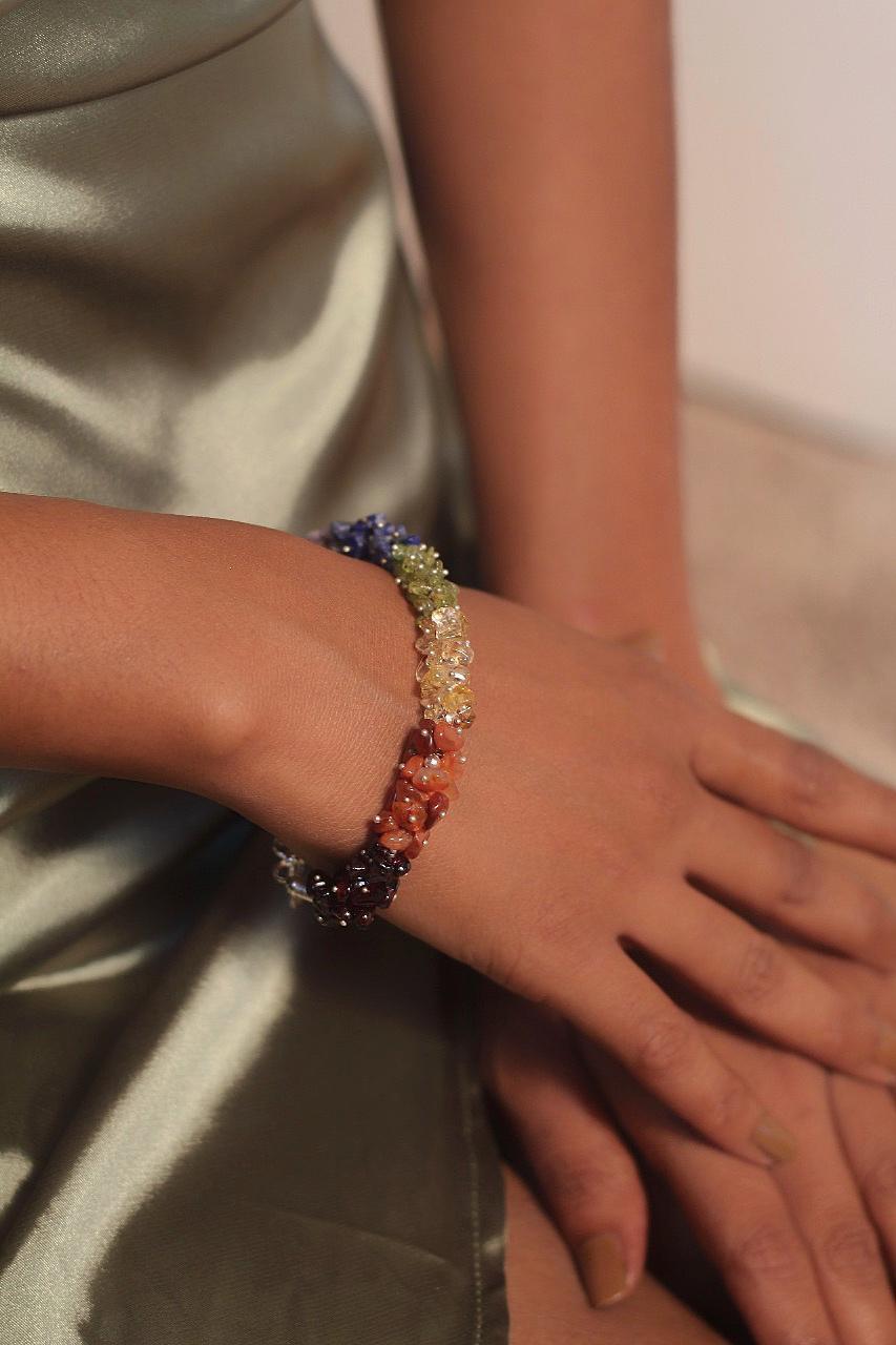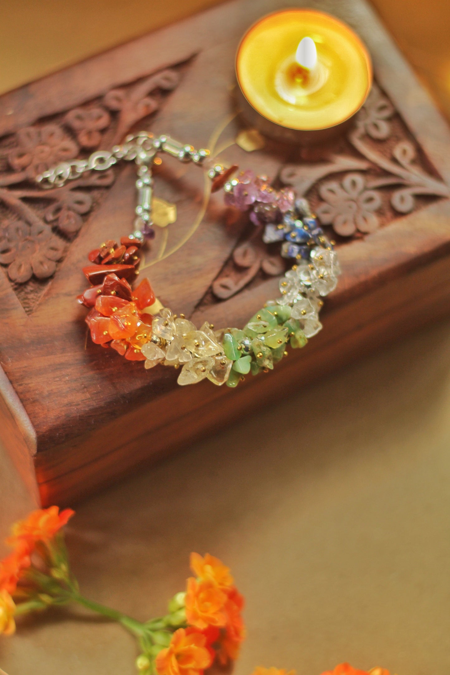 Seven Chakra Bracelet contains seven different type of crystal chips each associating with particular chakra