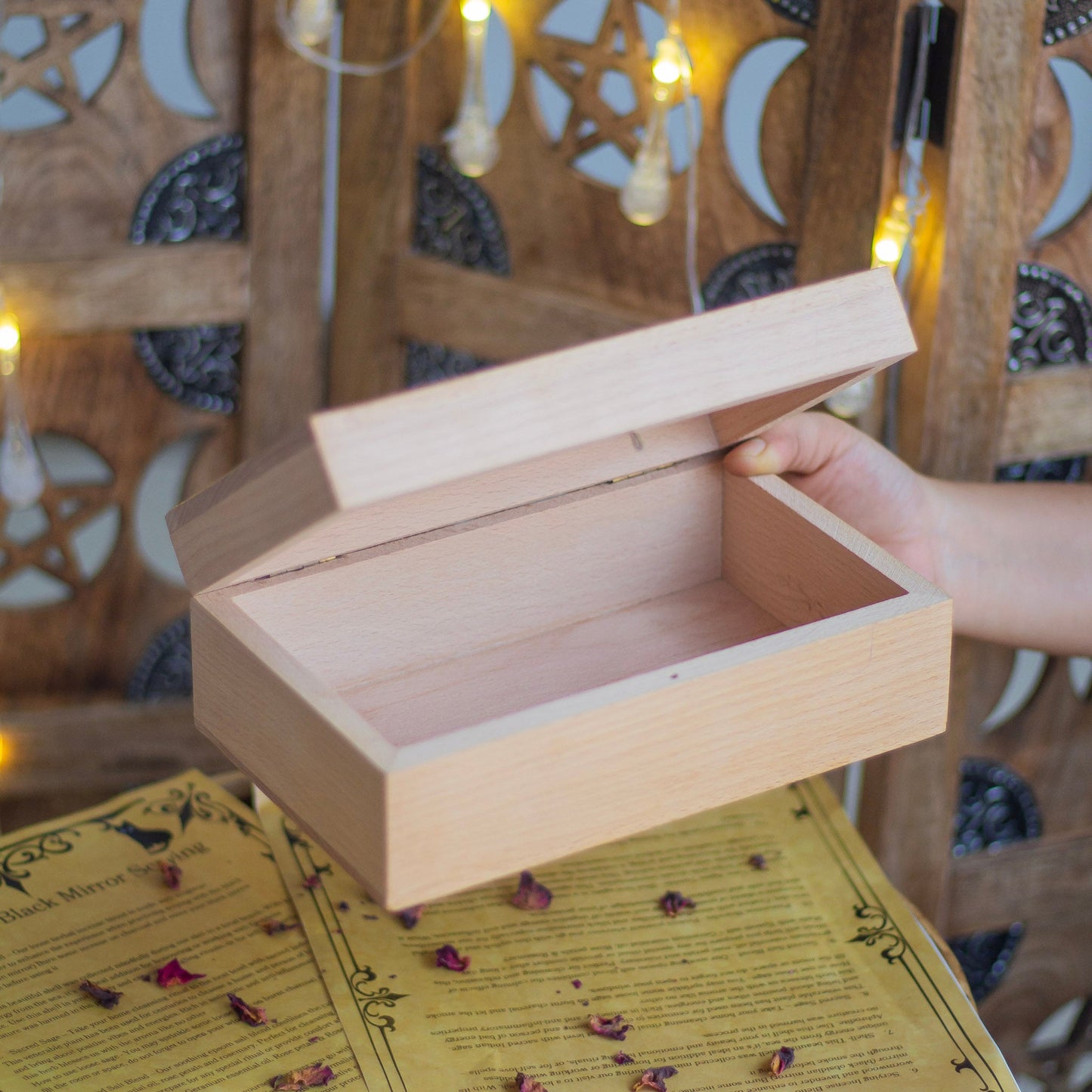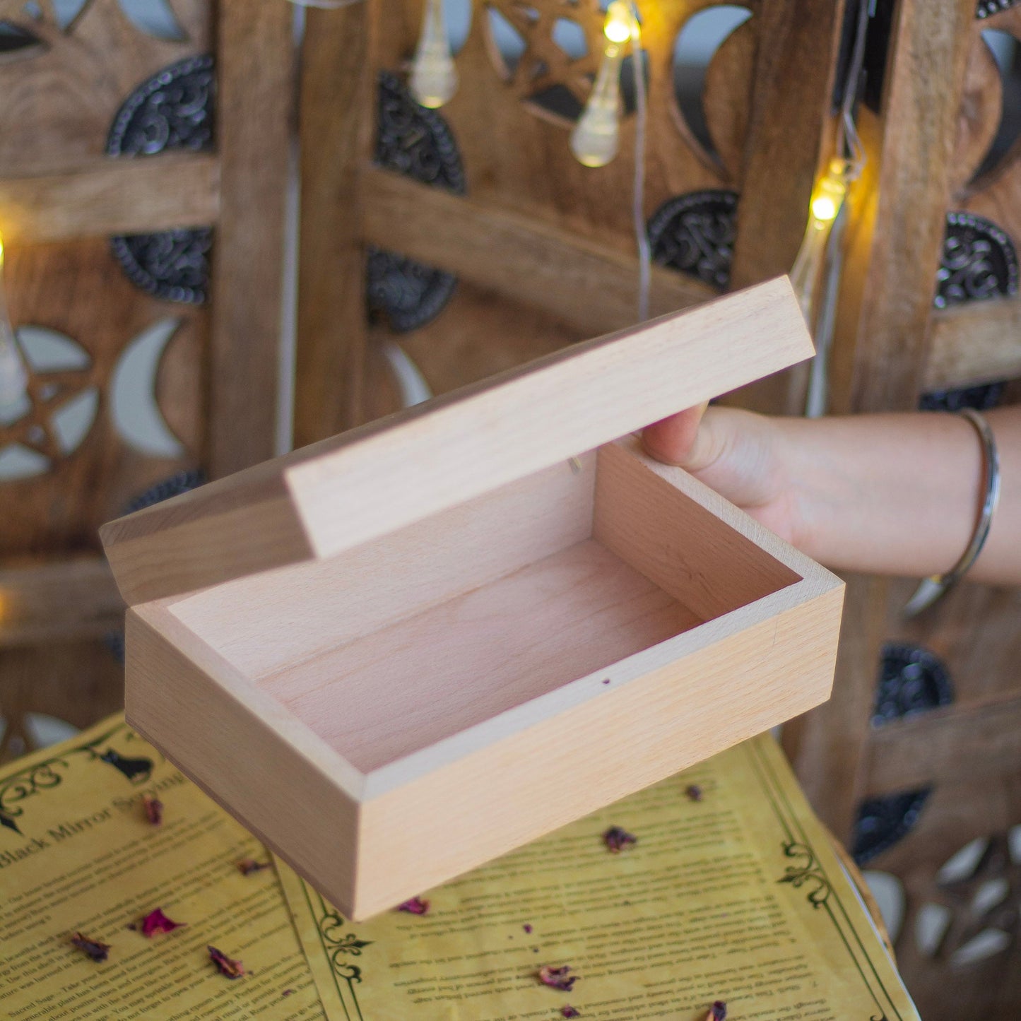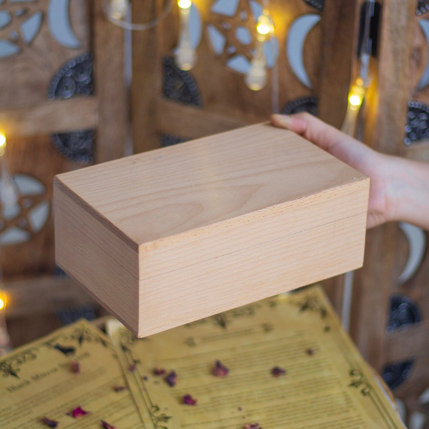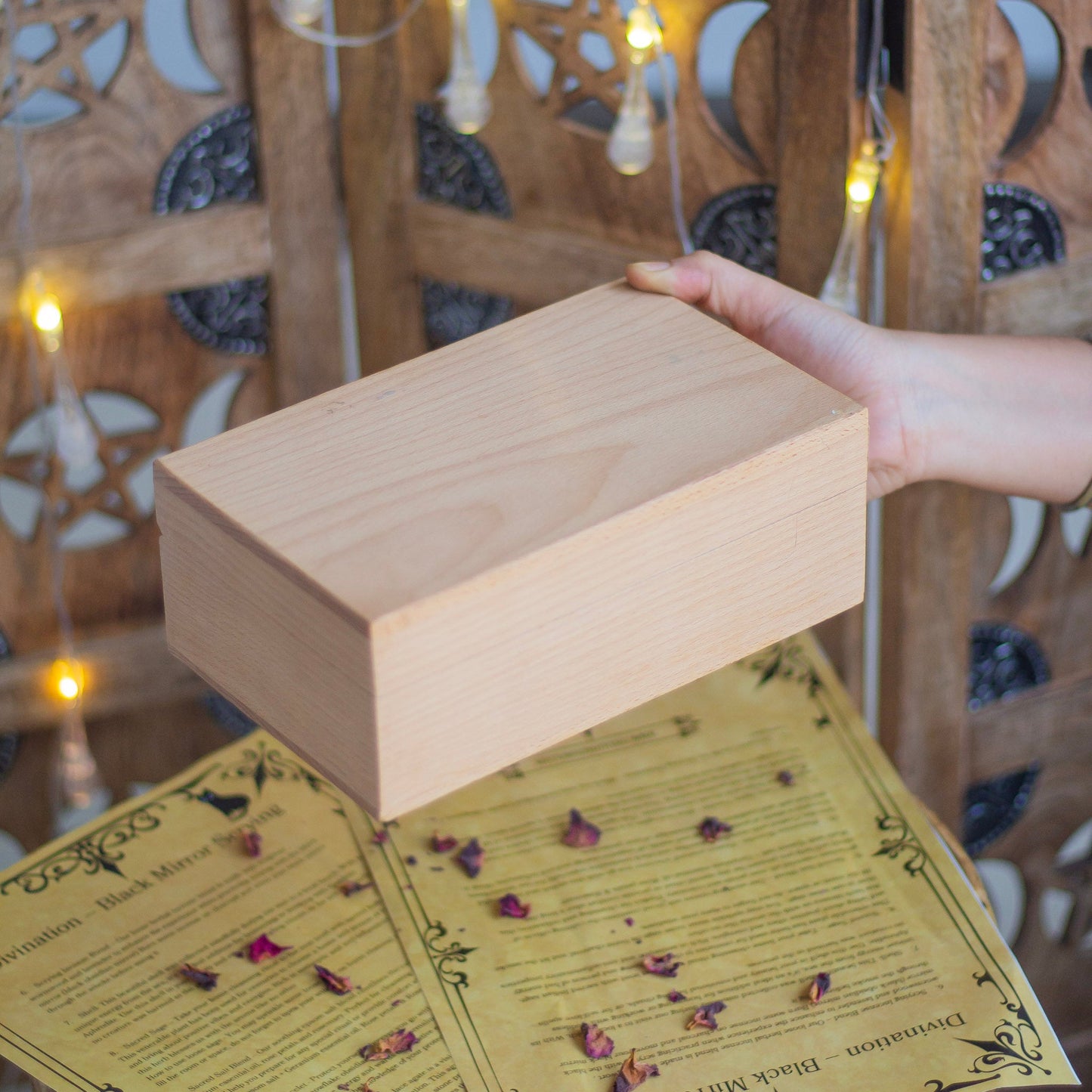 Made with high-quality steam beech wood, this 8x3x5 inch box is perfect for storing tarot cards, crystals, talisman, and spell items. Keep your spiritual tools organized and protected while adding a touch of natural beauty to your space. Ideal for both beginners and experts in the mystical arts.