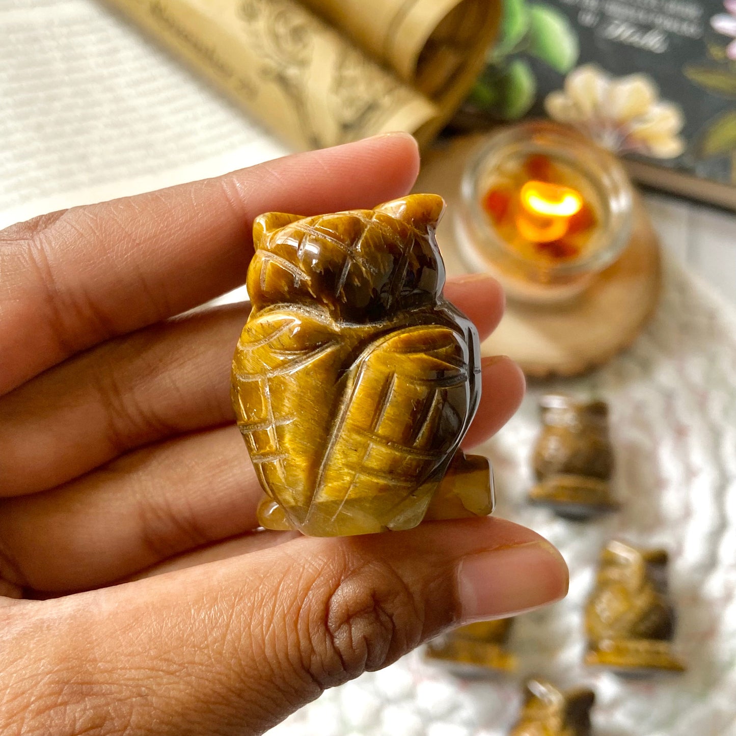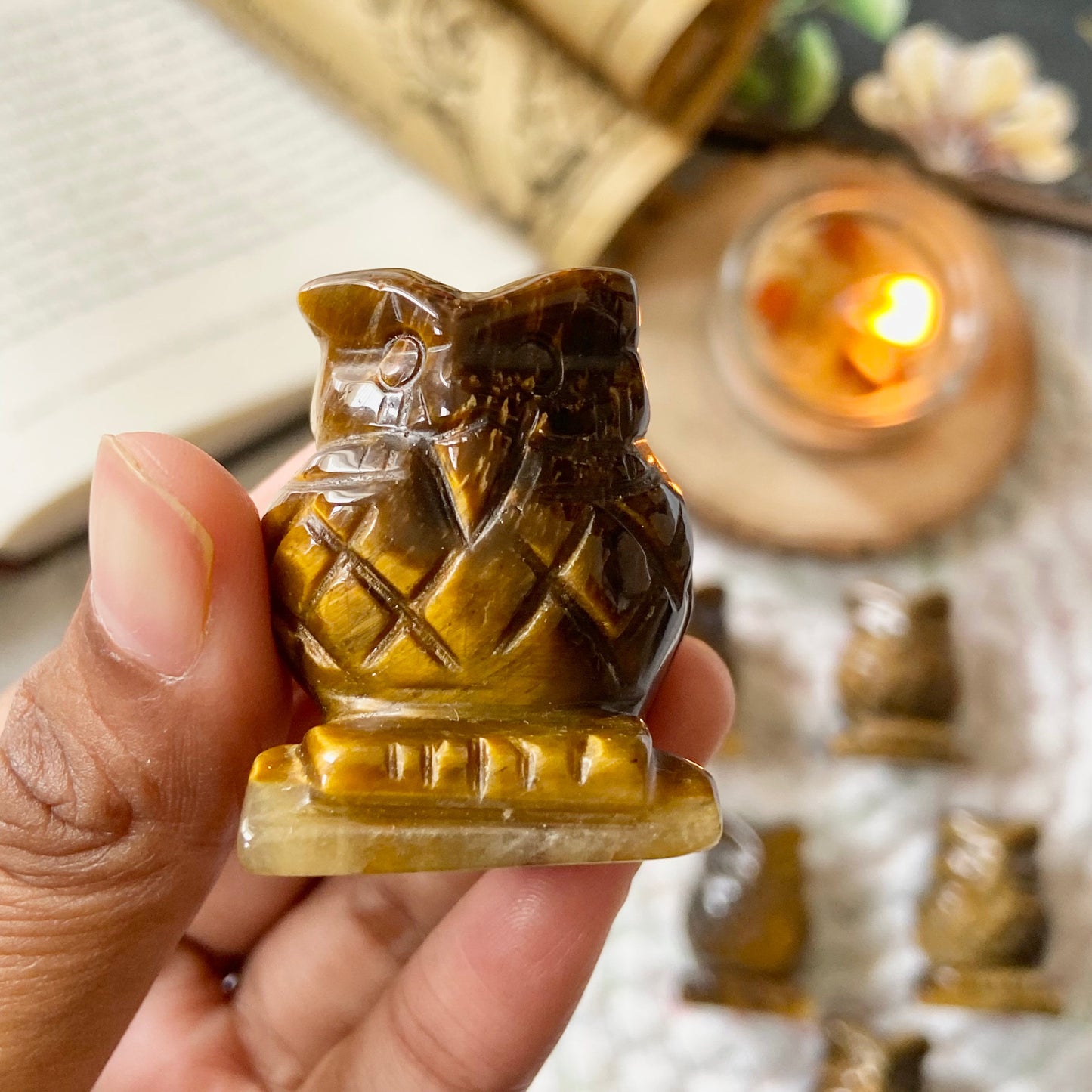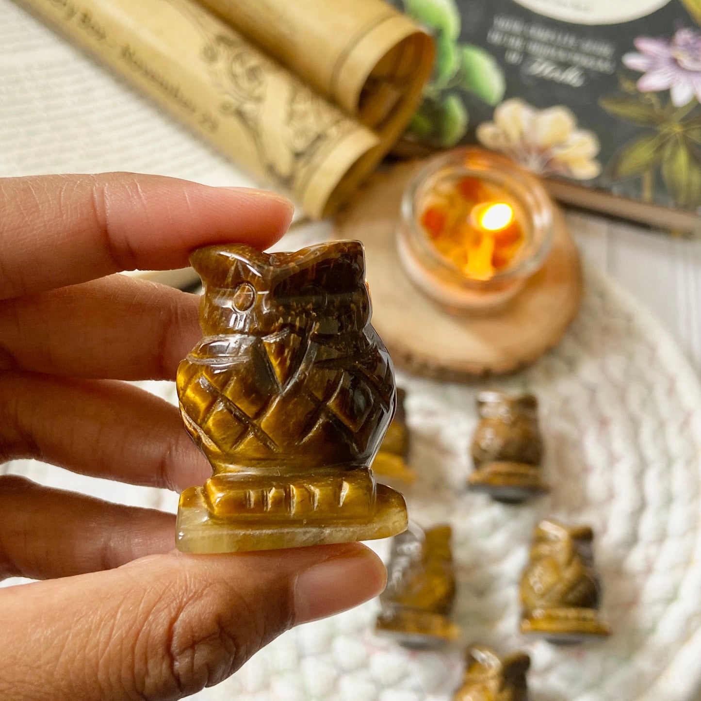 Tiger's Eye Owl Crystal Carving | Wealth & Fortune
