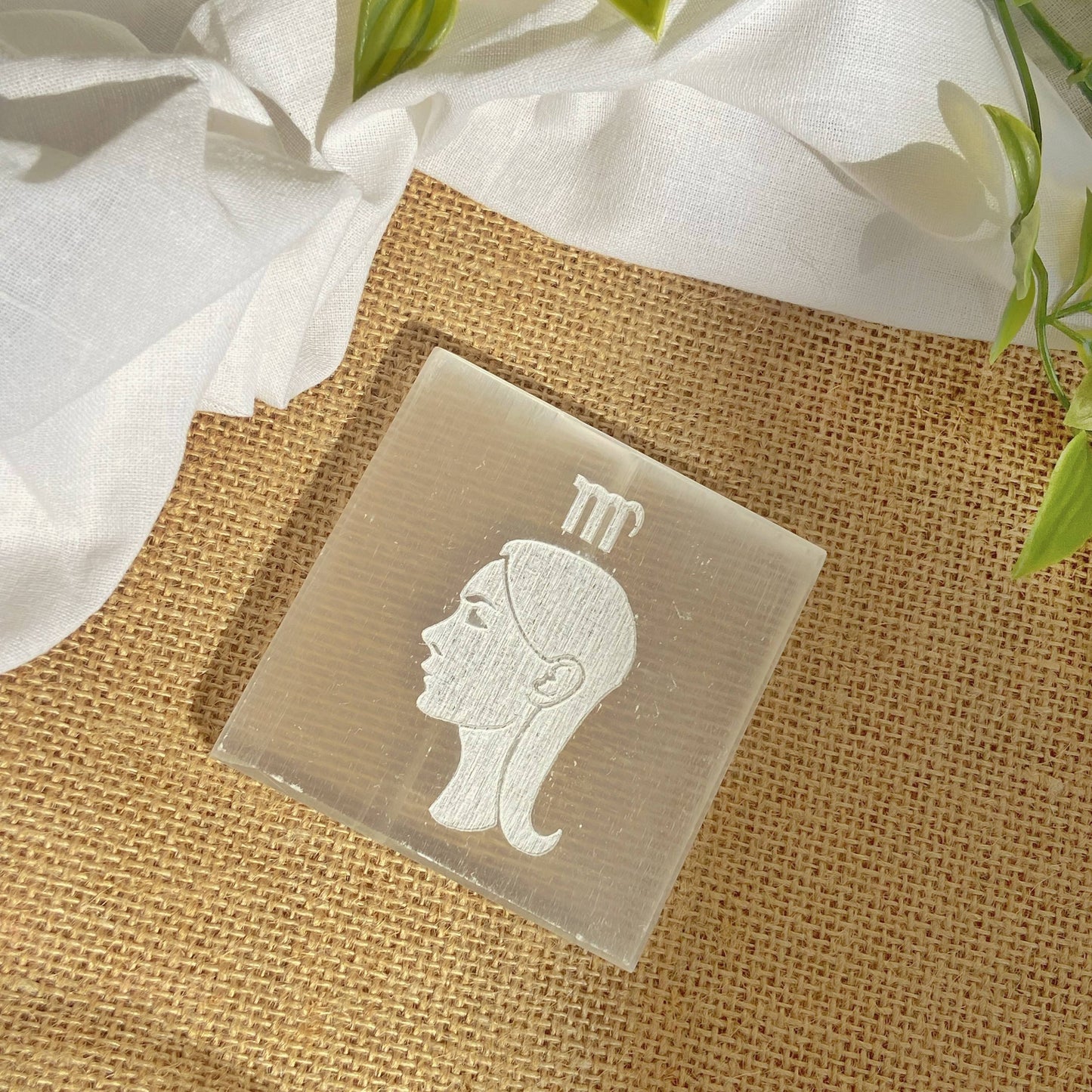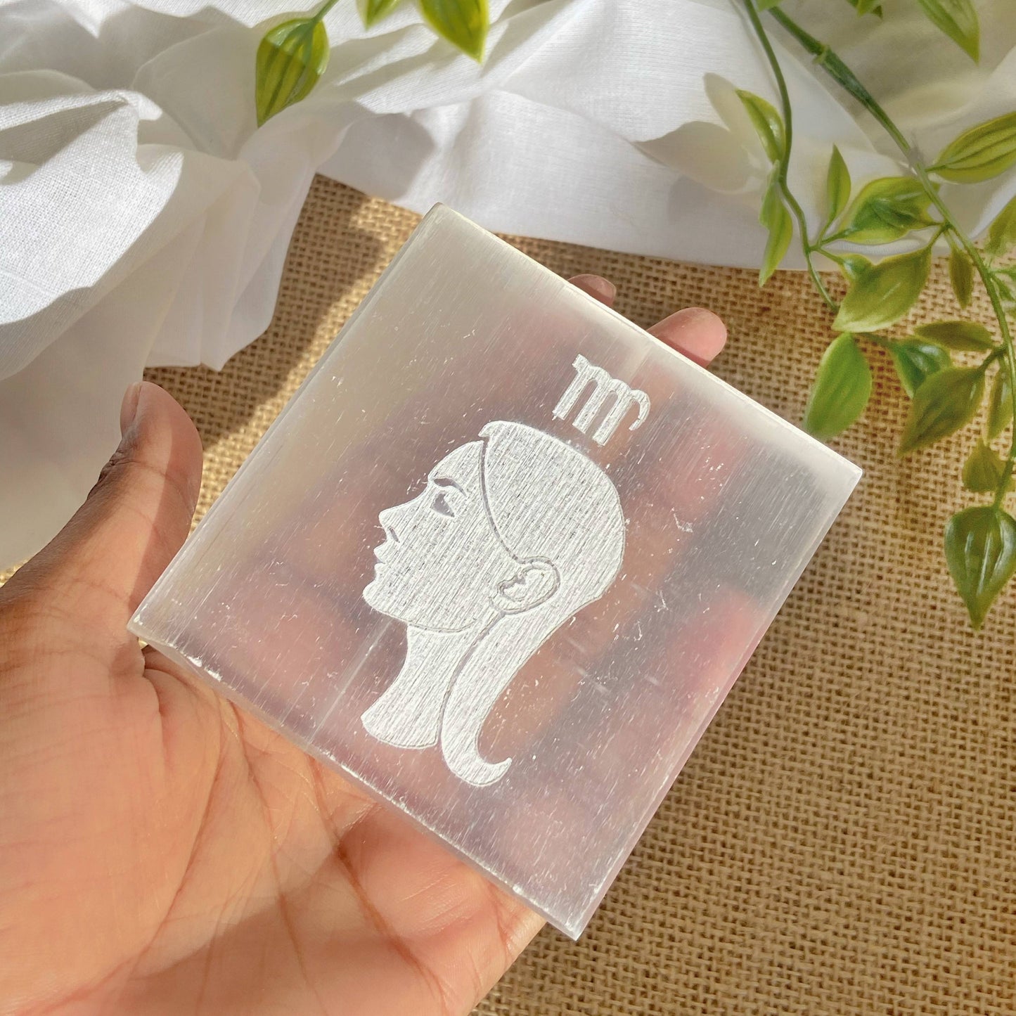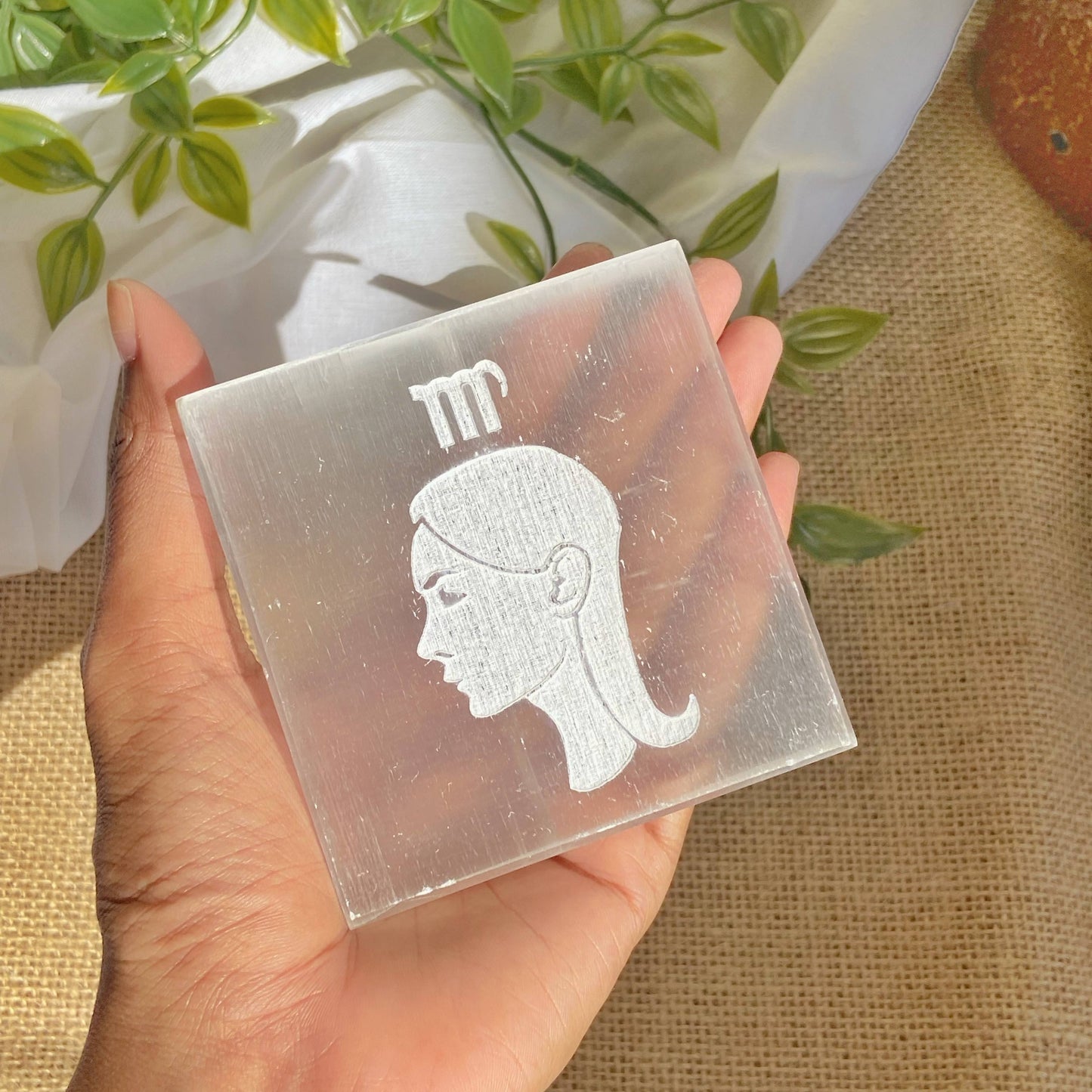 Virgo Zodiac Carved Selenite Plate - 3 Inches